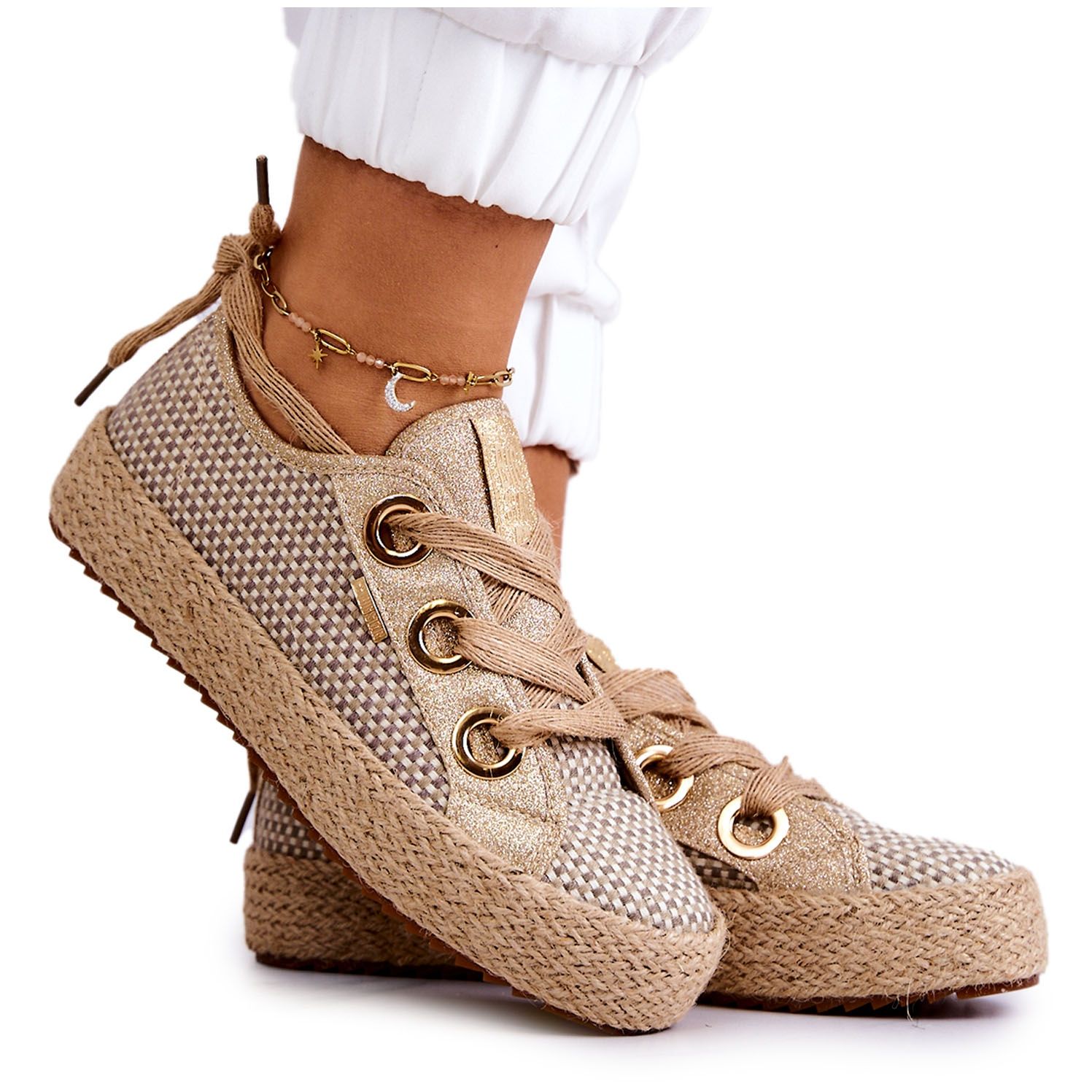 Detalii: Pantofi de damă împletit Big Star JJ274392 Bej și Auriu