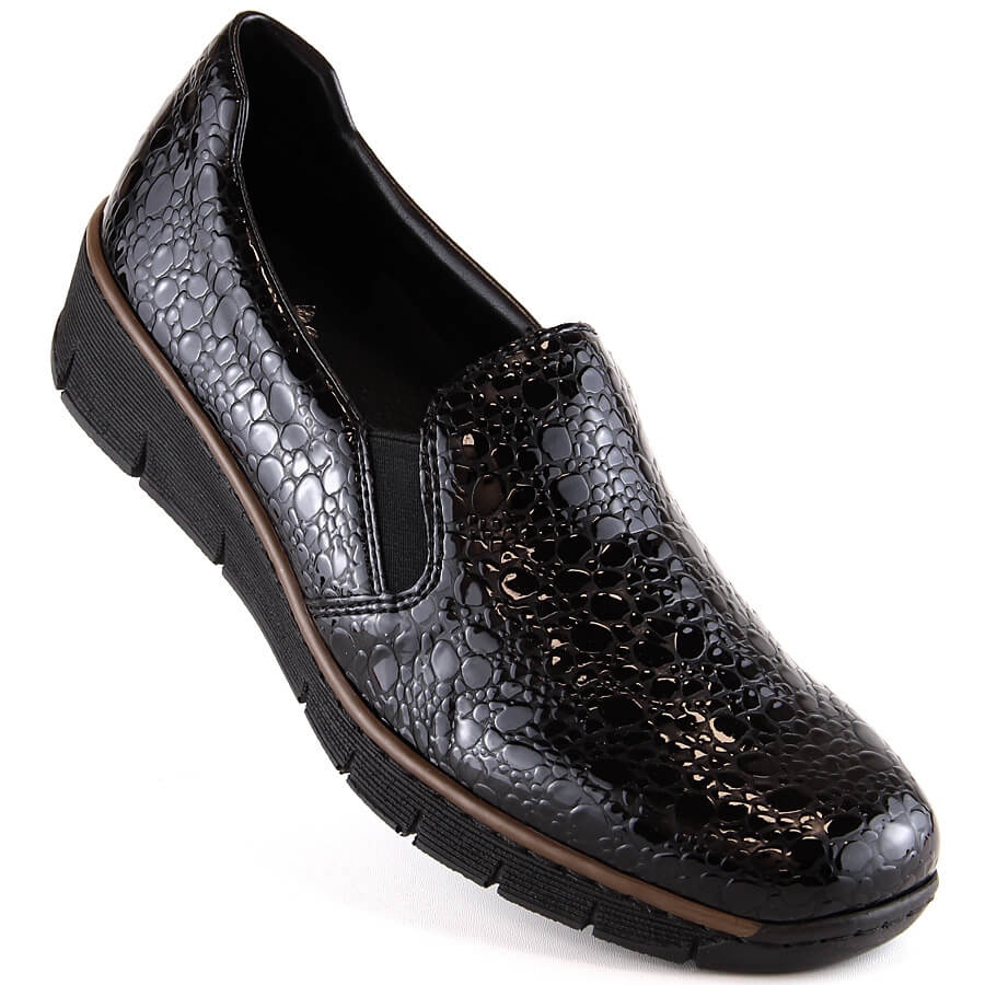 Rieker Pantofi de damă lăcuți confortabili, negri, Rieker 53766-45 negru
