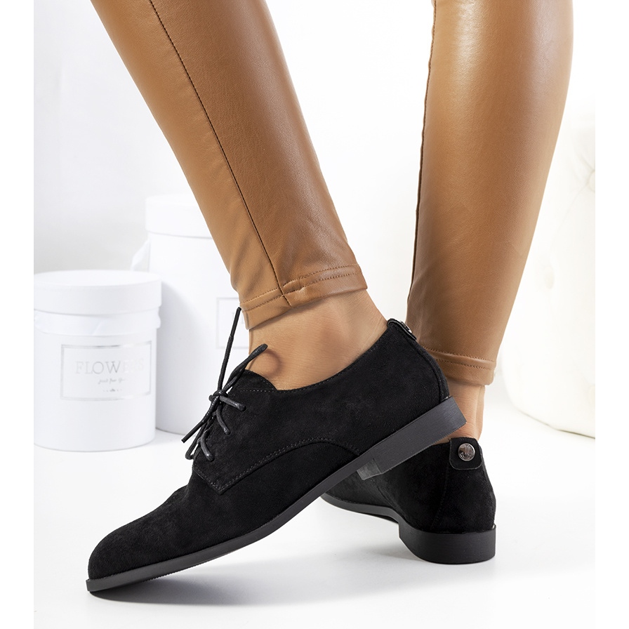 Pantofii negri Lukrecja sunt extrem de universali - se potrivesc atat cu tinutele casual, cat si cu tinutele mai formale. Datorită înălțimii reduse (8 cm) și materialelor moi, mersul în ele este o plăcere pură. Modelul este disponibil în numerele standard 36-41, ceea ce permite o potrivire perfectă la picior.