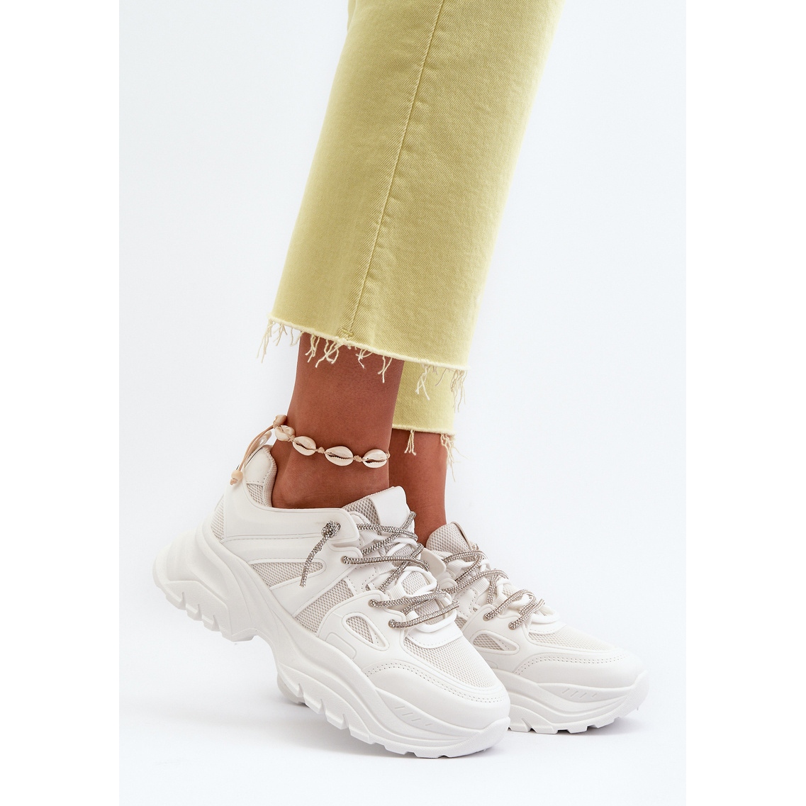 Inna marka Pantofi de damă pe o talpă masivă cu șireturi decorative Relissa albă