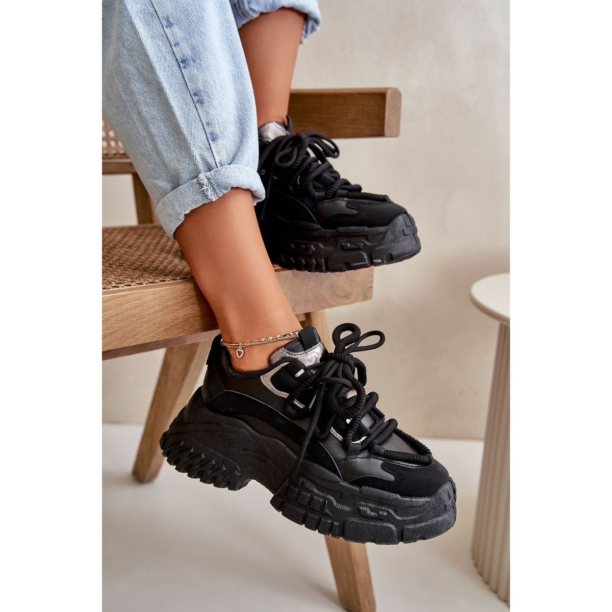 Detalii: Pantofi de damă pe talpă masivă, Nevela neagră negru