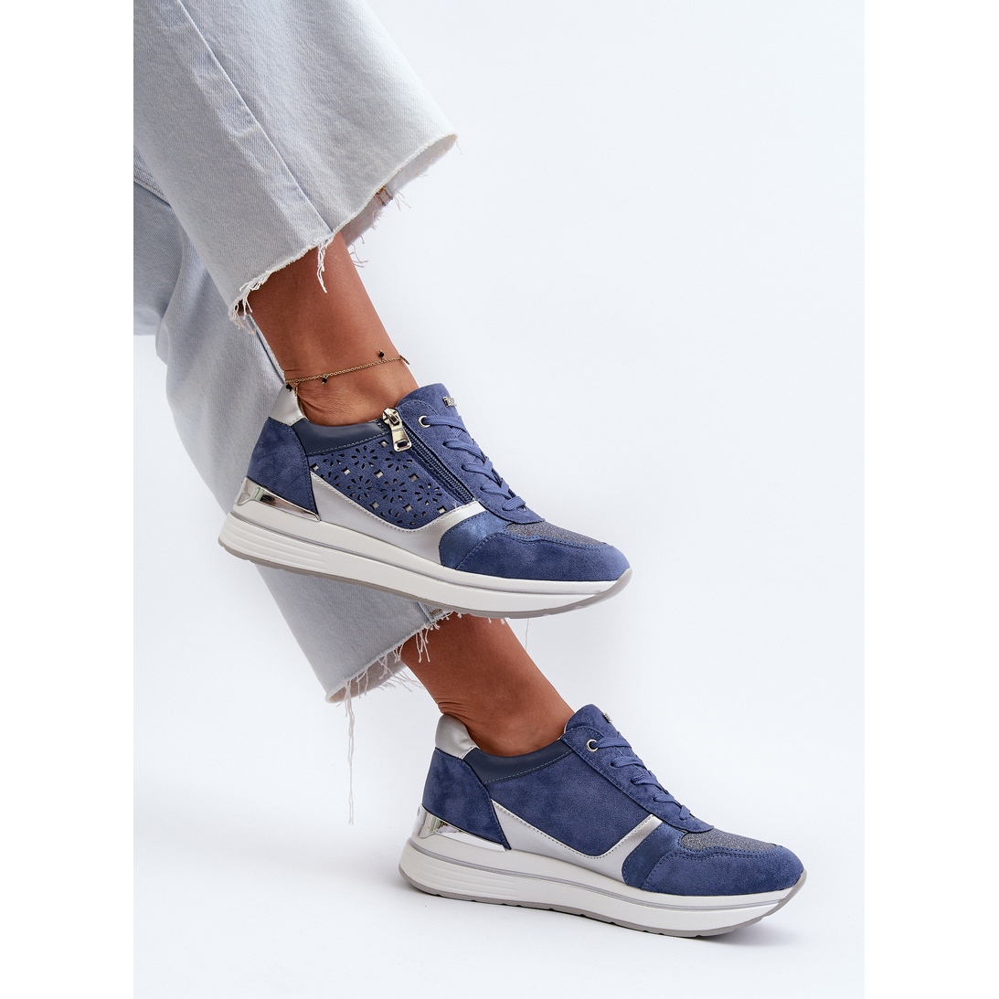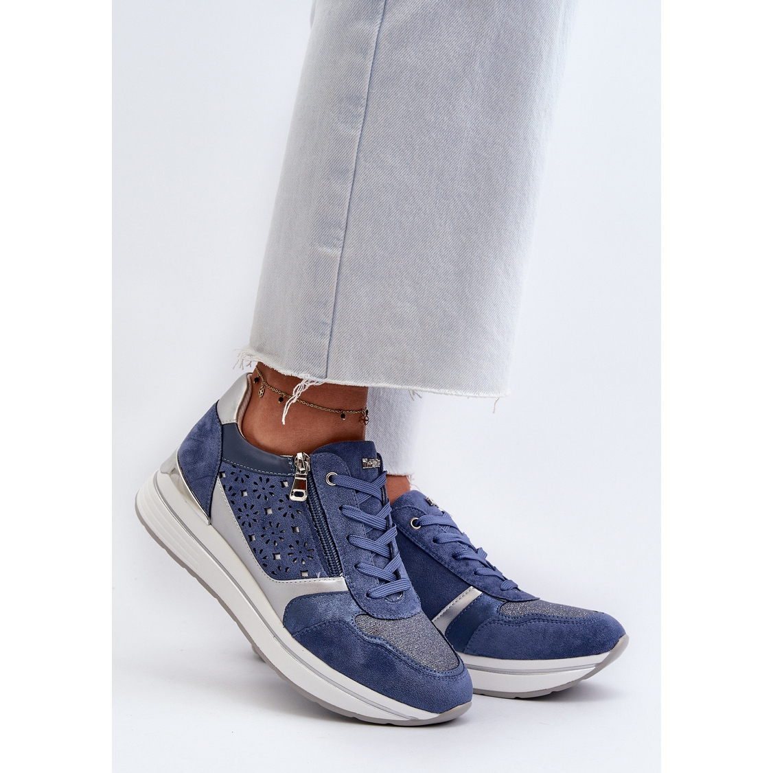 Detalii: Pantofi De Damă Platformă Cu Model Ajurat și Sclipici INBLU IN000372 Albastru