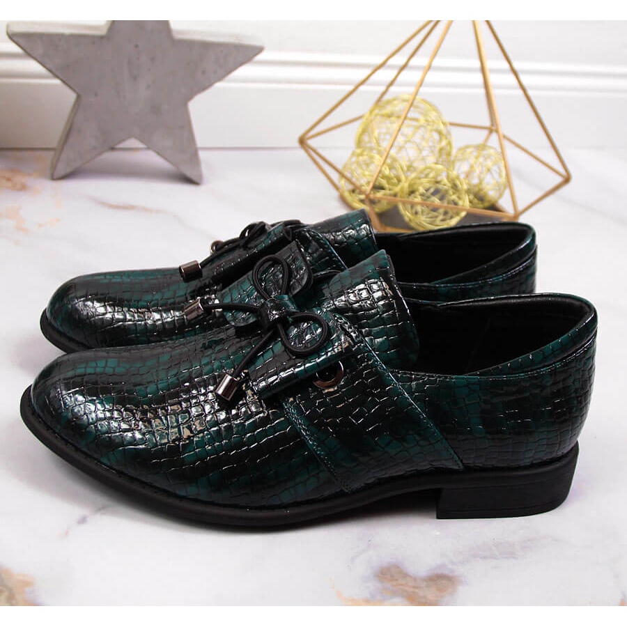 Jezzi Pantofi de dama verzi Jezzi lacuiti cu fundita verde