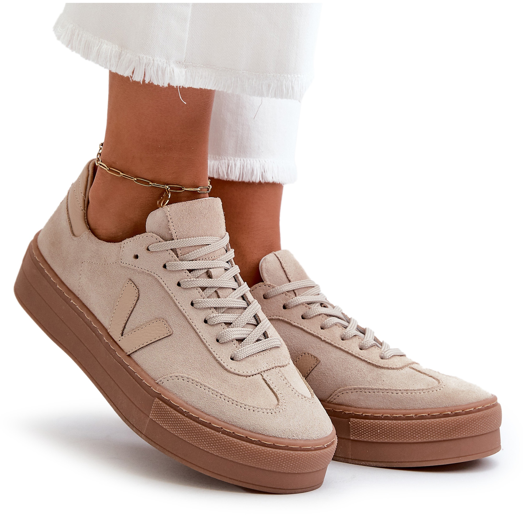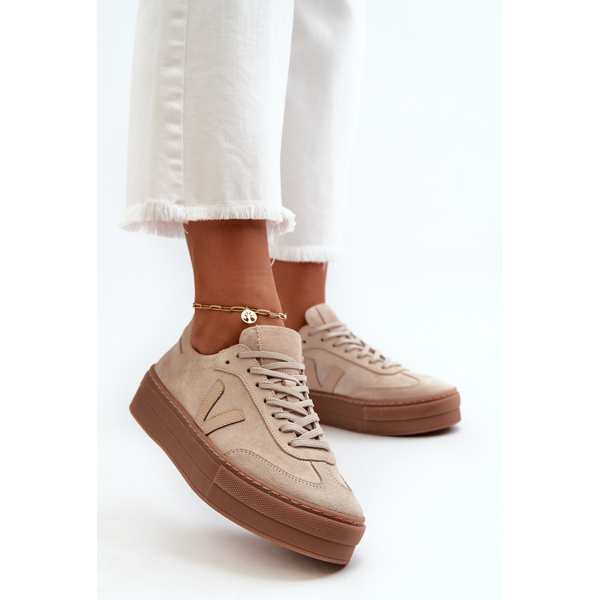 Vă prezentăm adidașii pentru femei Zazoo N1100S2 - este o combinație perfectă de eleganță și modernitate! Fabricate din piele de căprioară naturală de înaltă calitate, acești pantofi cu platformă bej vor completa perfect orice stilizare zilnică. Datorită platformei înalte de 3,5 cm, acestea oferă confort și lejeritate și, în același timp, adaugă câțiva centimetri înălțime, ceea ce face ca picioarele să pară mai subțiri și mai lungi.