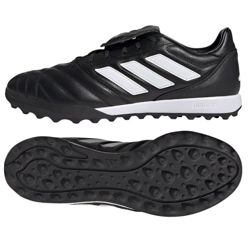Adidas Copa Glavo TF (FZ6121) Pantofi de fotbal - un clasic într -o ediție modernă. Modelul negru, de gazon scăzut, conceput pentru a juca pe suprafețe artificiale, combinând pielea moale, naturală, cu confort și durabilitate.