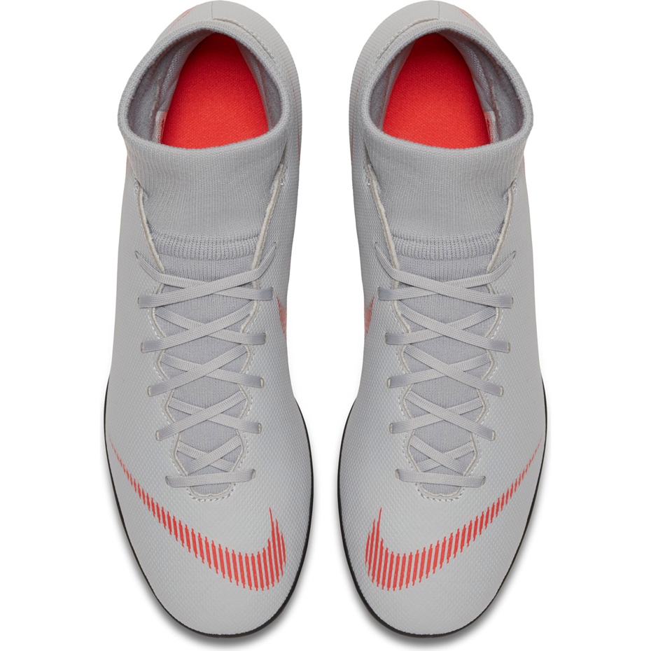 Nike Mercurial Superfly 6 Club MG este un model creat pentru a juca pe suprafețe naturale și artificiale. Gulerul sintetic, flexibil, superior și dinamic, asigură o anumită „cum ar fi o șosetă”, iar o talpă ușoară cu gemuri de trafic din plastic (MG) permite schimbarea rapidă a direcției și o accelerație stabilă. Model din colecția RIDED ON BETIC, într -o versiune multiplă (gri cu accente roșii).