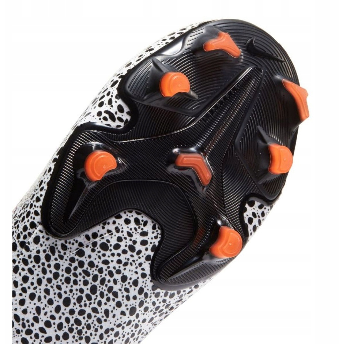 Descoperiți noi posibilități pe teren cu ghetele de fotbal Nike Mercurial Superfly 7 Academy CR7 FG/MG Jr.. Aceste crampoane unice, de culoare albă cu accente negre, sunt concepute pentru tinerii fotbaliști care doresc să îmbine stilul cu performanța ridicată.