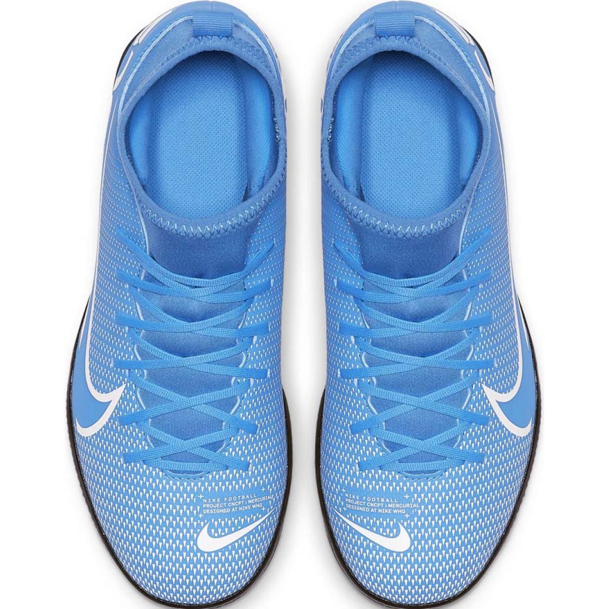 Culorile in nuante de albastru si alb le ofera un caracter unic, dinamic, care cu siguranta va atrage atentia la fiecare meci. Acest model face parte din renumita colecție Mercurial, cunoscută pentru performanța și versatilitatea sa, care oferă tinerilor jucători confort și încredere în timpul jocului.