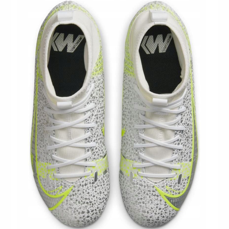 Nike Mercurial Superfly 8 Academy FG/MG Junior CV1127 107 - Pantofi de fotbal pentru jucători tineri care se așteaptă la viteză, confort și un anumit control asupra mingii. Modelul din colecția Silver Safari combină designul modern în argint cu soluții funcționale cunoscute din linia mercurială.