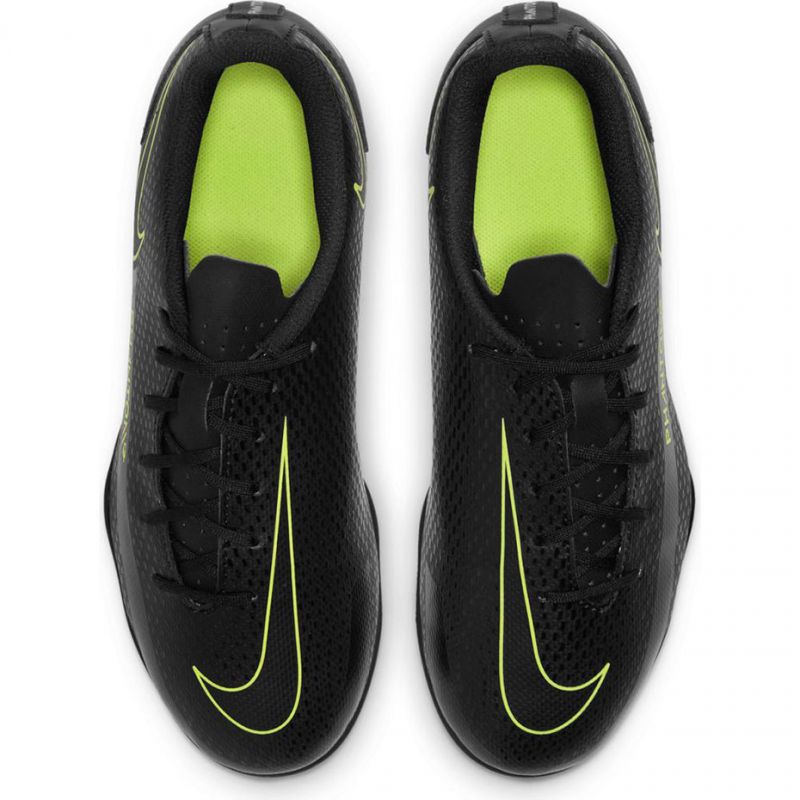 Acest model este o altă versiune a popularei linii Phantom din colecția Nike FTB Black X Prism Pack, care este subliniată de designul său modern într-o culoare neagră elegantă. Șireturile asimetrice asigură o potrivire mai bună, iar finisajul texturat al feței permite un control excelent al mingii. Datorita configuratiei crampoane montate pe o talpa usoara, pantofii garanteaza o aderenta optima atat pe iarba naturala, cat si pe suprafete artificiale, ceea ce ii face un model versatil pentru jucatorii tineri.