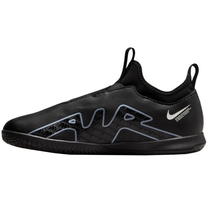 Pantofii de fotbal Nike Zoom Mercurial Vapor 15 Academy IC Junior DJ5619 001 sunt alegerea perfectă pentru tinerii sportivi care doresc să se distreze să joace în sălile de sport. Acest model junior, lansat ca parte a colecției Black Pack, combină designul modern cu cea mai înaltă funcționalitate.