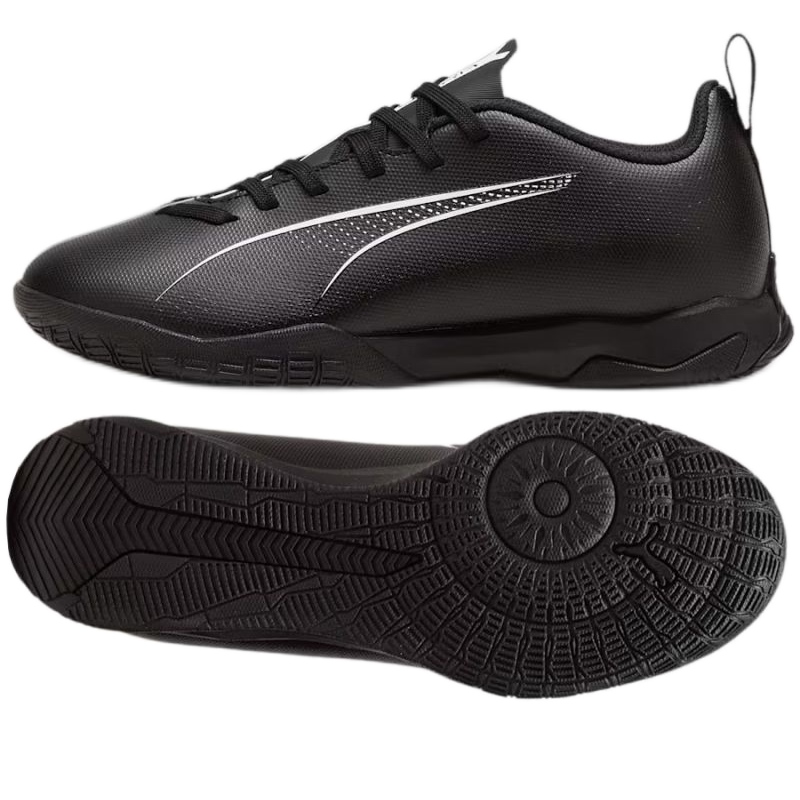 Puma Ultra 5 Play It 107913-02 Pantofi de fotbal în negru sunt alegerea perfectă pentru iubitorii de fotbal mici care doresc să își înceapă aventura cu acest sport. Aceste săli interioare din colecția de pachete Fearless Premiere combină confortul și designul modern, ceea ce le face o alegere excelentă pentru a juca în condiții interioare.
