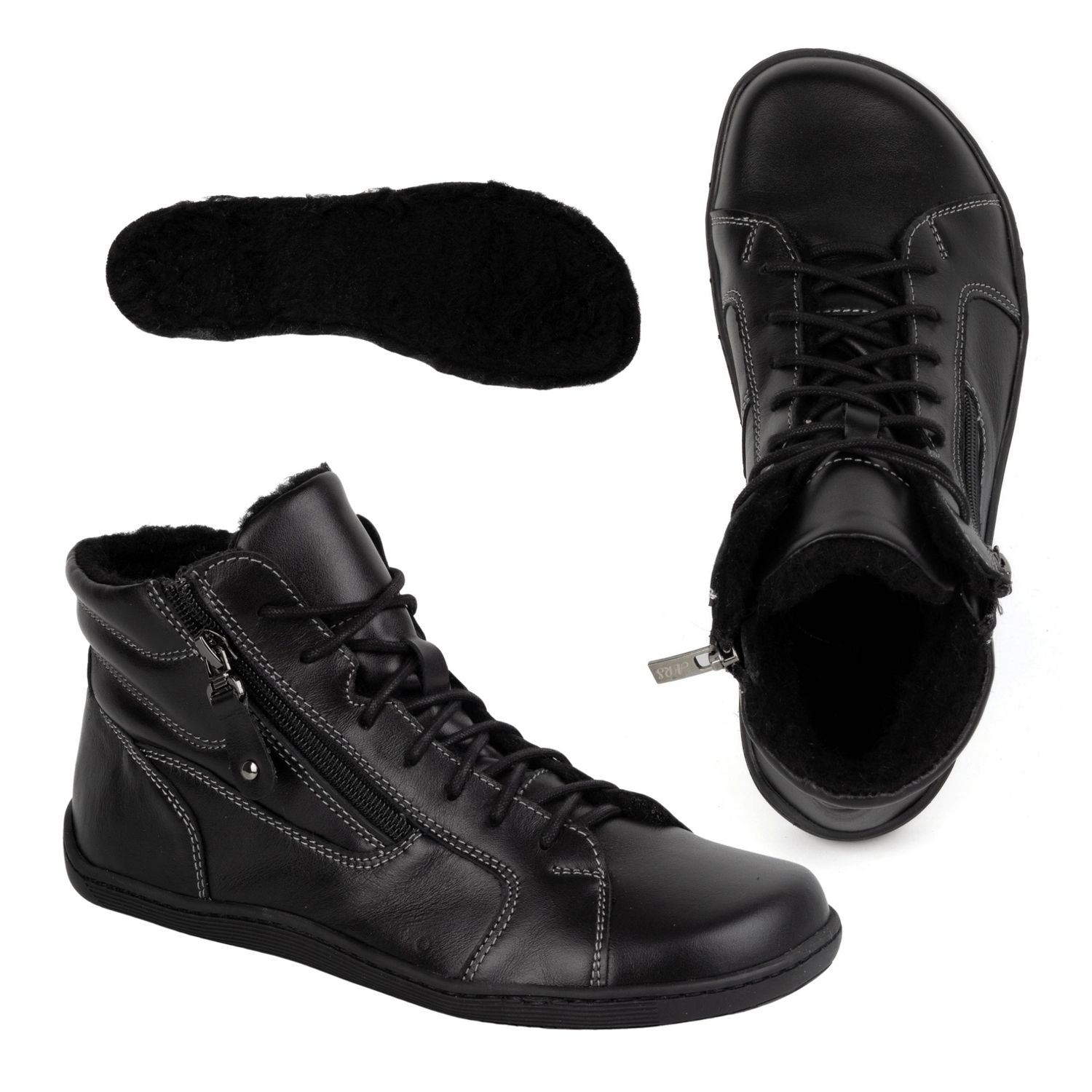 **Pantofi de iarnă din piele Olivier Minimalist Barefoot 1261 - Negru**