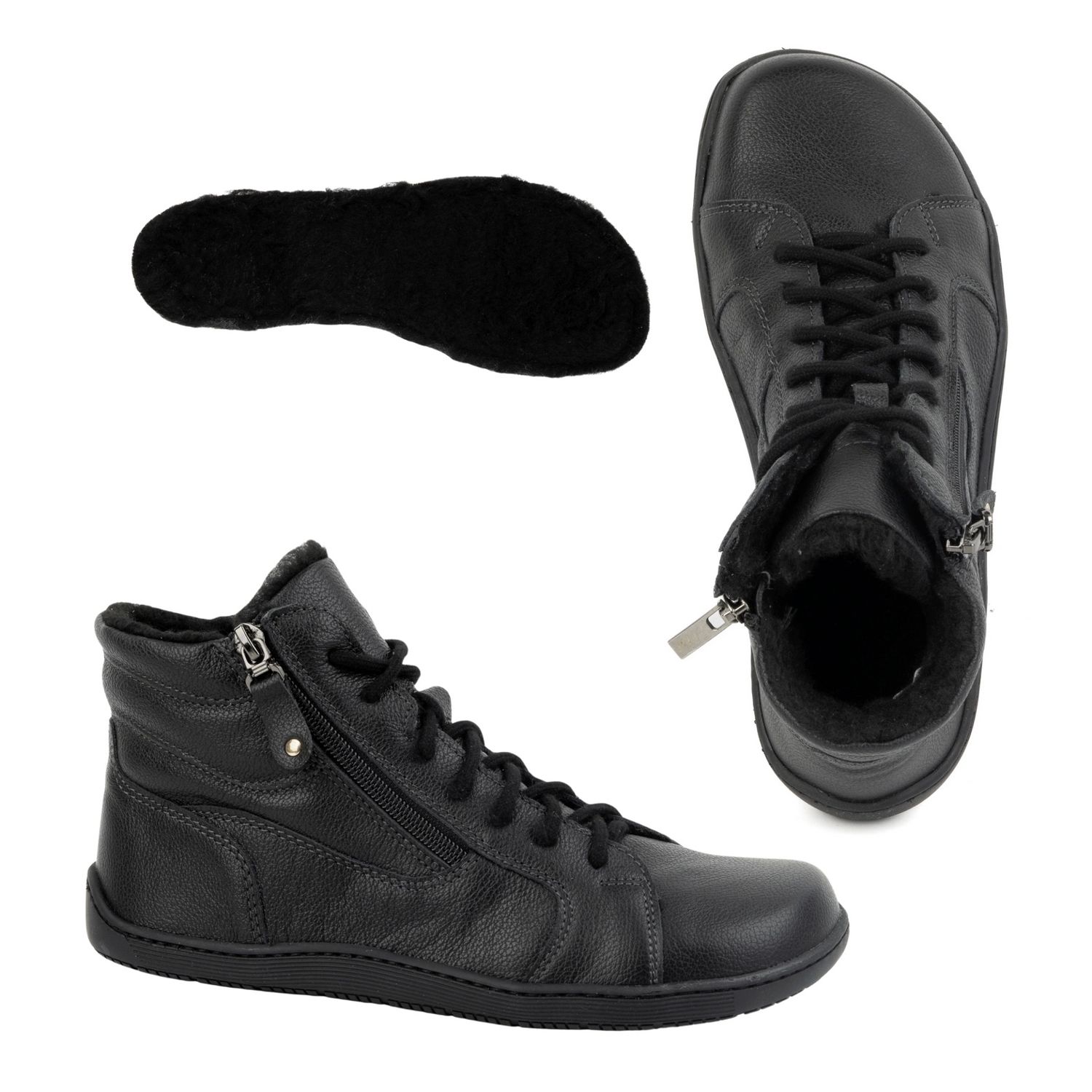 Olivier Olivier Pantofi de iarnă minimalisti din piele desculț 1261 negru