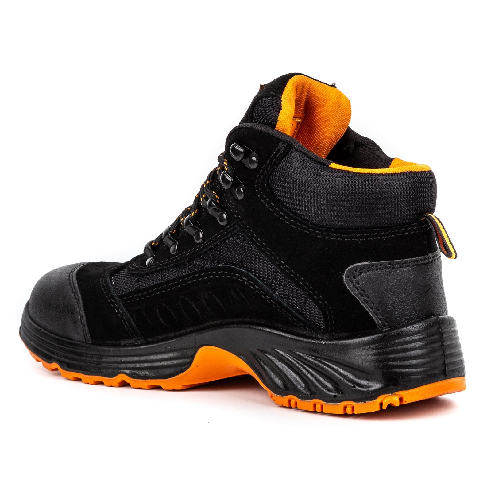 Pantofii au fost special conceputi pentru a face fata diverselor provocari pe care le prezinta mediul de lucru. Pielea naturala nubuc din care este confectionata partea superioara garanteaza rezistenta la abraziune si confort excelent la purtare. Partea superioară înaltă protejează eficient glezna și zona înconjurătoare, minimizând riscul de răni, cum ar fi entorsele.