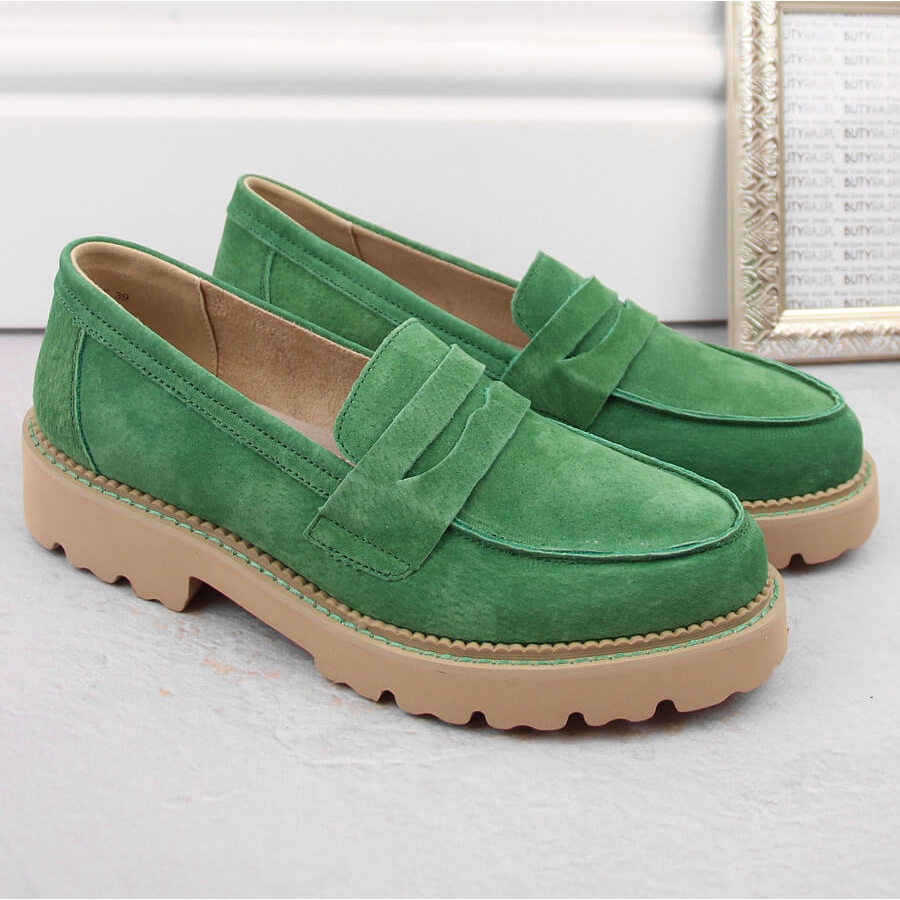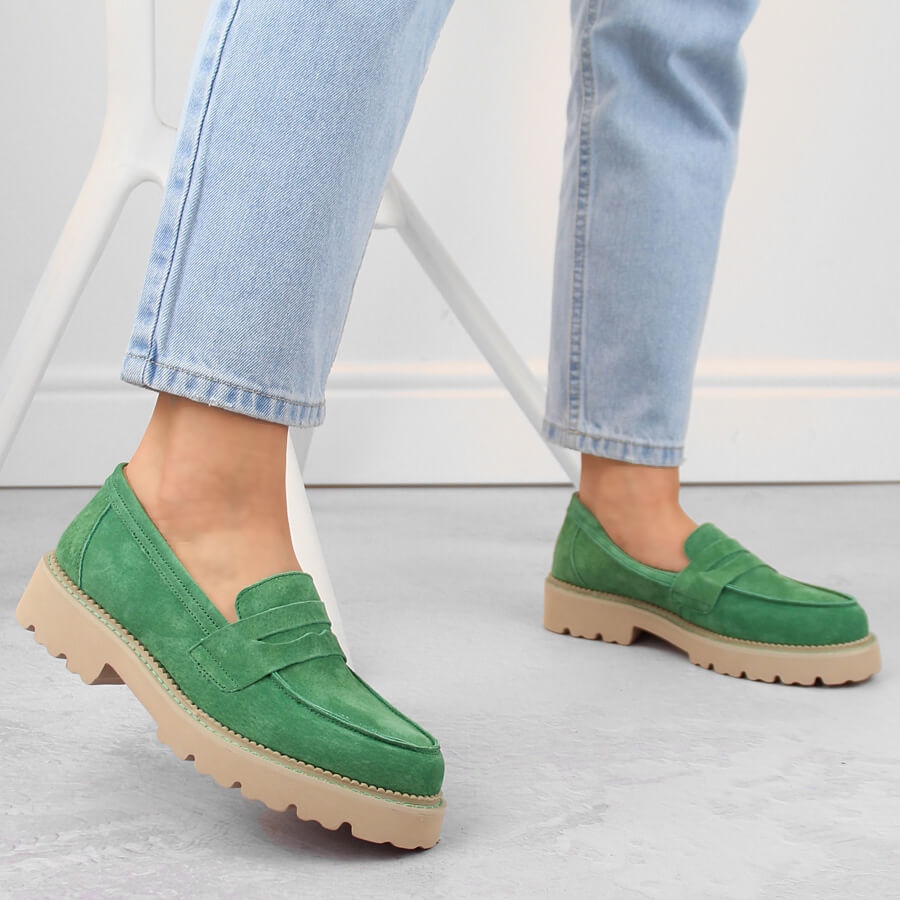 Detalii: Pantofi de piele intoarsa pentru femei, mocasini verzi Filippo DP6090 verde