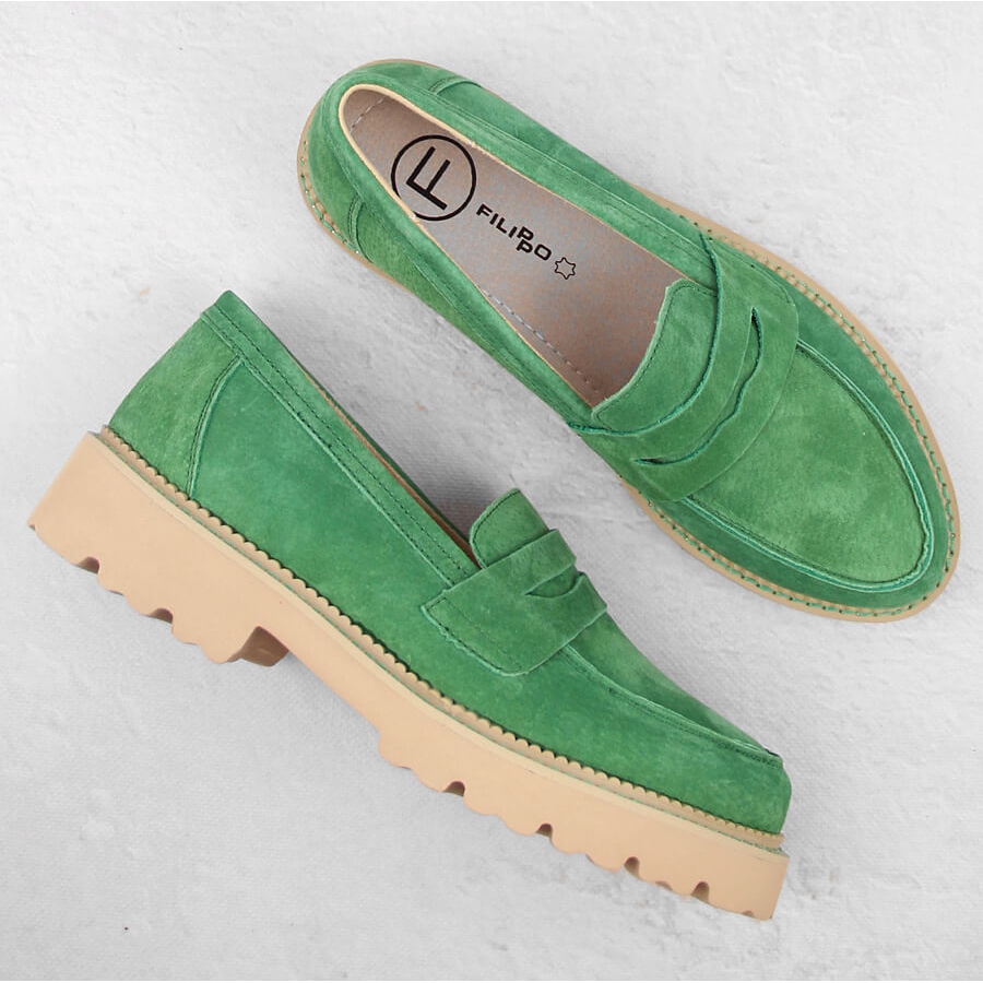 Descoperiți eleganța și confortul în mocasinii de damă Filippo DP6090 din piele de căprioară într-o nuanță frumoasă de verde. Acești pantofi eleganti, din piele naturală de înaltă calitate, îmbină perfect designul la modă cu confortul la purtare.