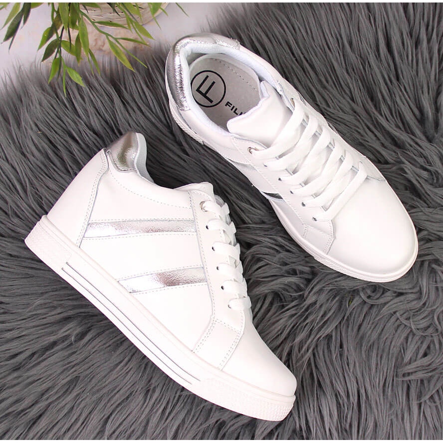 Pantofii pentru femei Modern Filippo combină eleganța cu un personaj sportiv. Fabricate din piele naturală într -o nuanță universală, curată de alb, acestea sunt minunate ca un complement pentru stilizări de zi cu zi și mai casual - de la blugi la rochii și fuste.