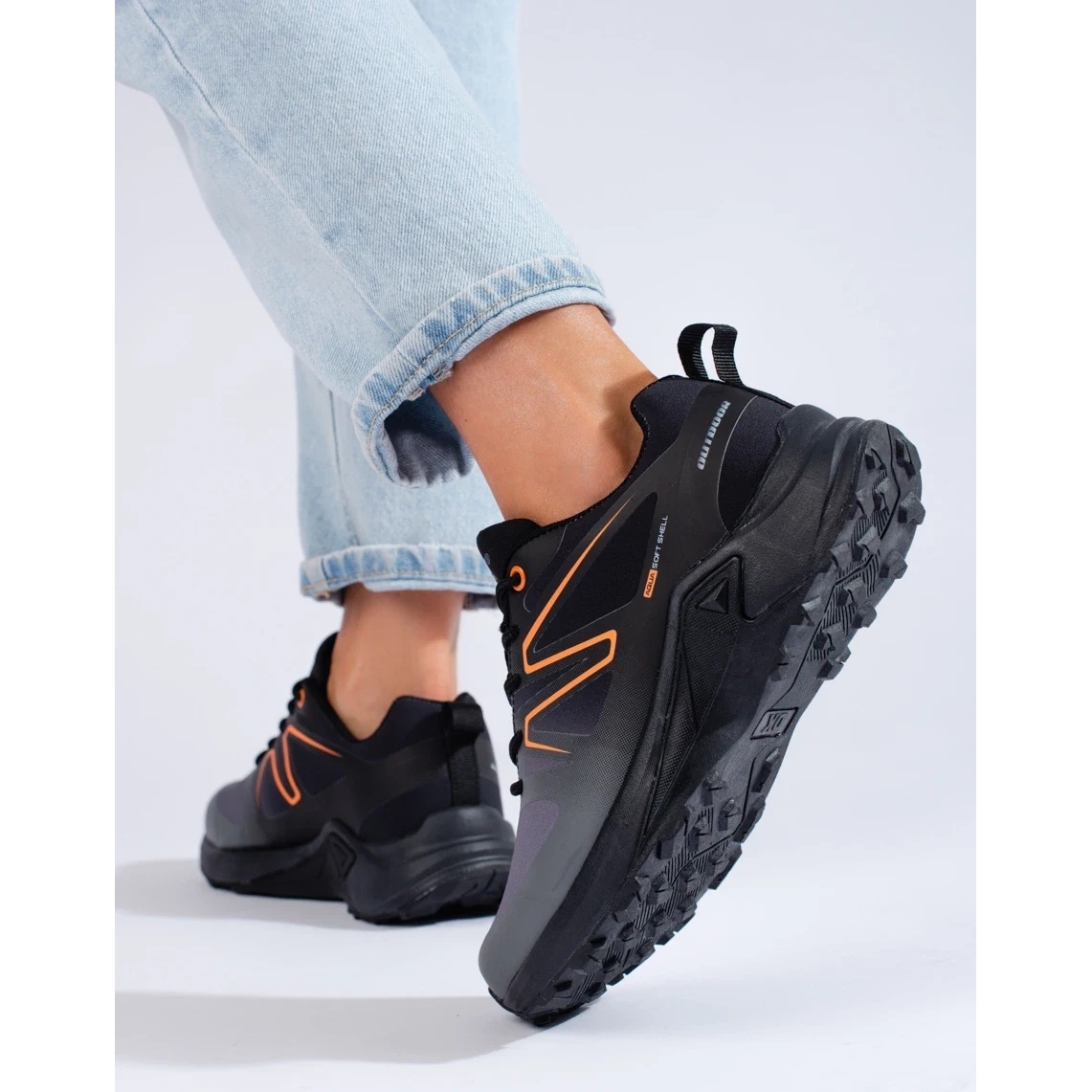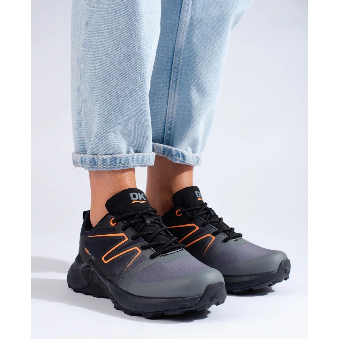 Pantofi funcționali și eleganți de trekking DK, combinând pielea ecologică durabilă cu material softshell elastic. Proiectat pentru activități în aer liber - ușor, rezistent la vânt și respirabil, într -o ediție sportivă, feminină. Culoare: Negru cu accente gri. Ambalajul original al producătorului: cutie.