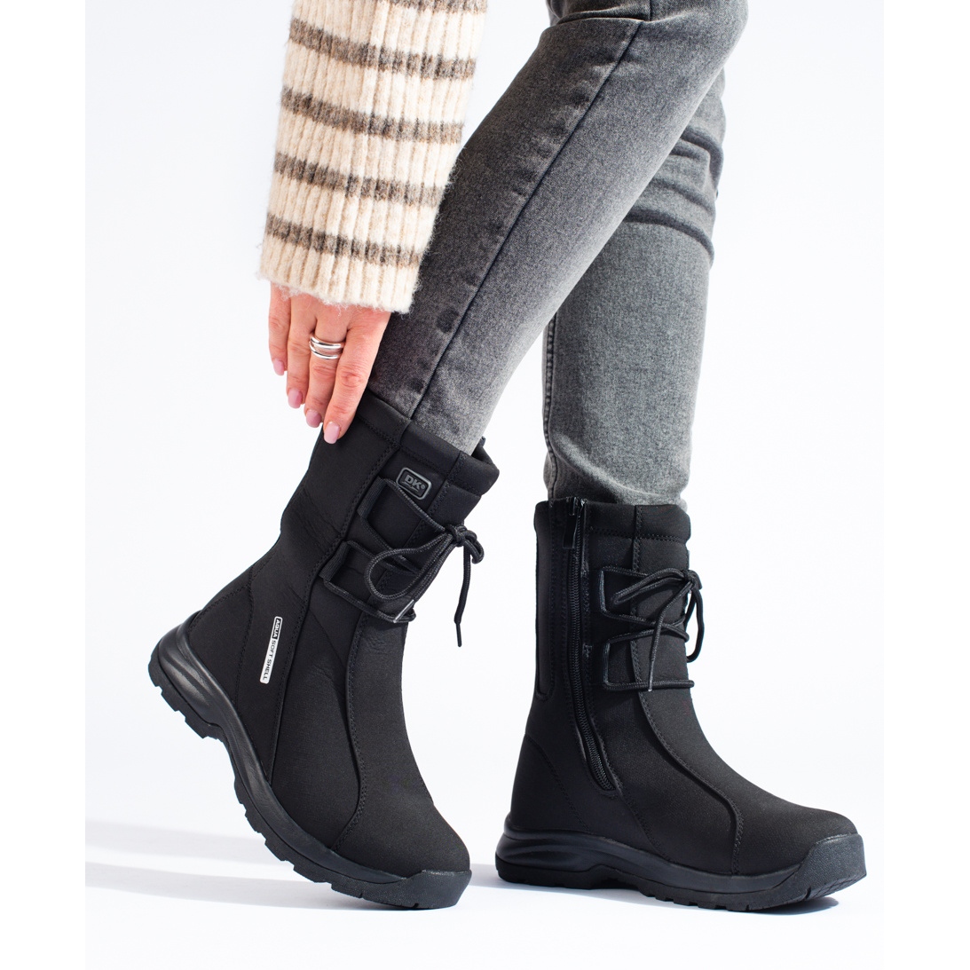 Descoperiți pantofi unici de trekking pentru femei cu piele de oaie DK în negru, care sunt alegerea perfectă pentru femeile active. Proiectate pentru confort și funcționalitate, aceste cizme înalte sunt perfecte pentru orice ieșire în natură, indiferent de anotimp.