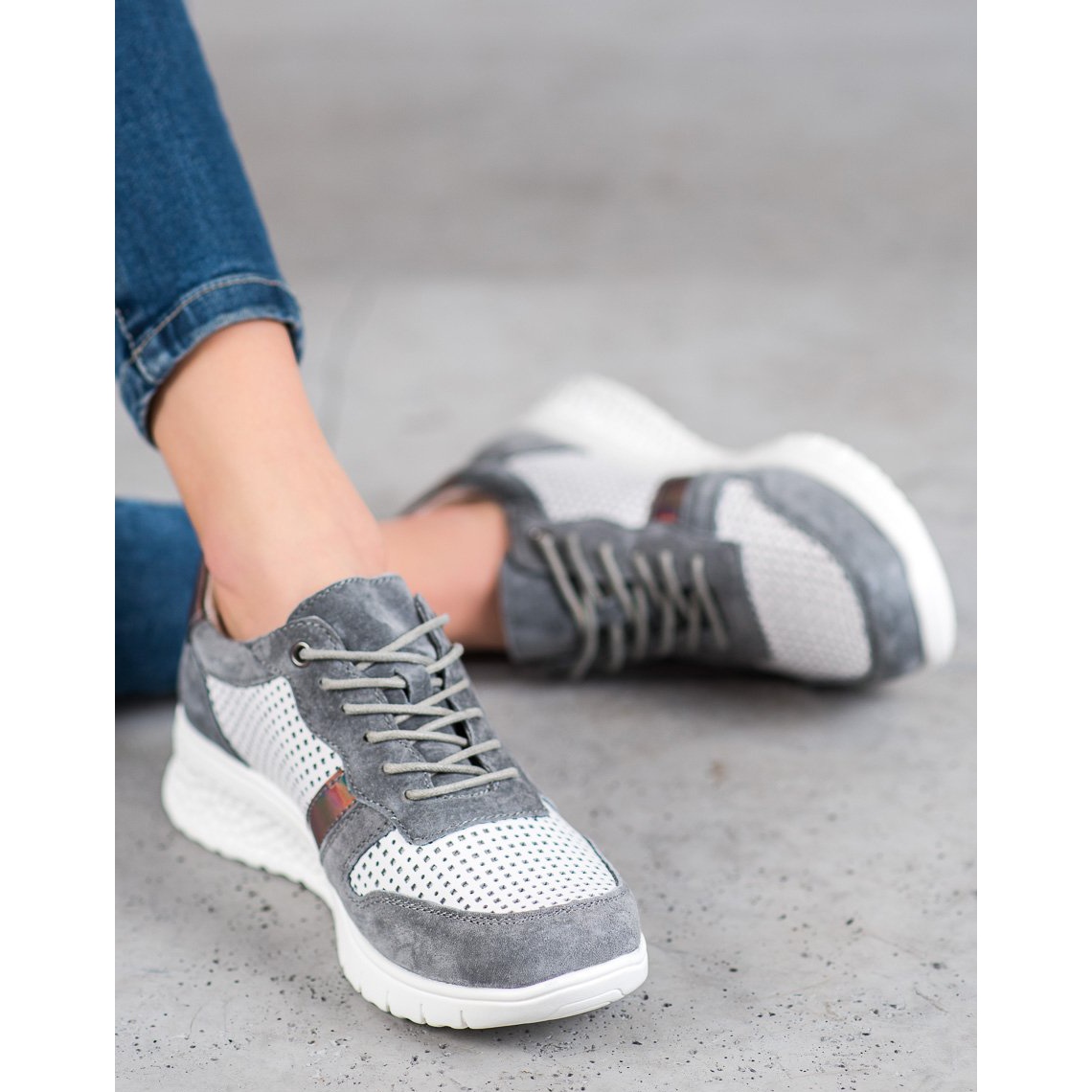 Descoperă stilul și confortul unic cu pantofii Filippo într-o versiune la modă alb și gri! Acești pantofi de damă extrem de la modă combină designul modern și funcționalitatea. Inserțiile holografice le conferă un caracter unic care atrage atenția, iar modelul ajurat adaugă un aspect lejer și aerisit.