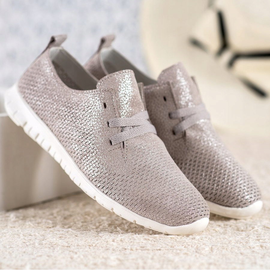 Pantofii din piele VINCEZA cu sclipici de culoare bej sunt o alegere excelenta pentru femeile care doresc sa combine eleganta cu confortul de zi cu zi. Aceste încălțăminte elegante se disting nu numai prin designul lor unic, ci și prin manopera solidă din materiale de înaltă calitate. Partea superioară din piele va adăuga clasă oricărui stil, iar sclipiciul strălucitor le va atrage atenția și le va distinge de alte modele.