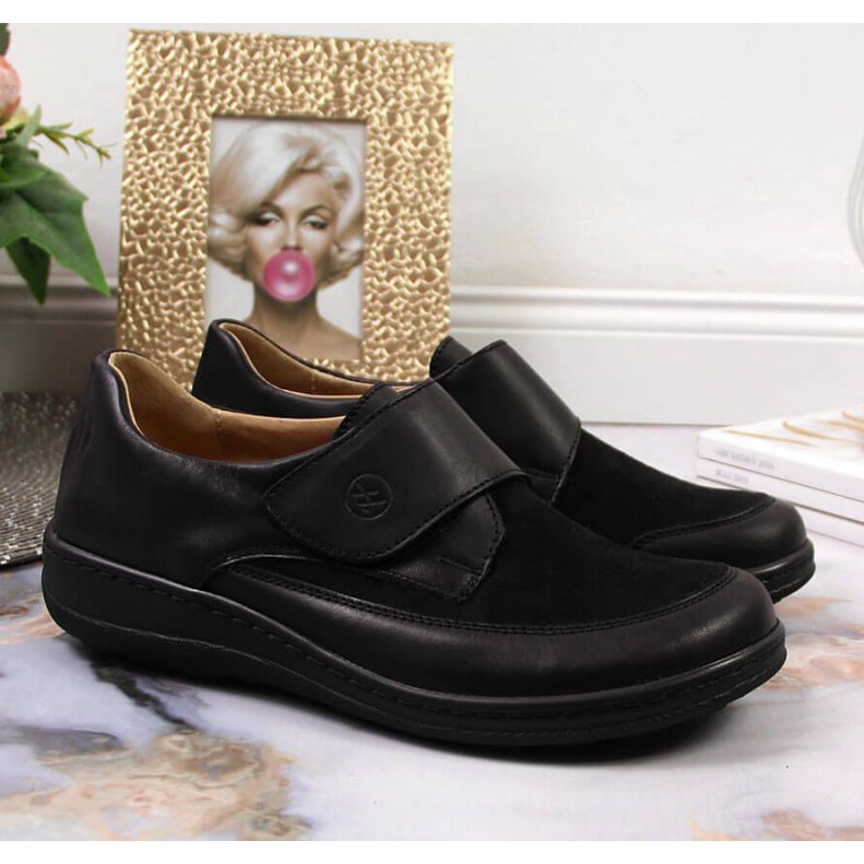 Helios Pantofi din piele cu velcro Helios W 395 negru