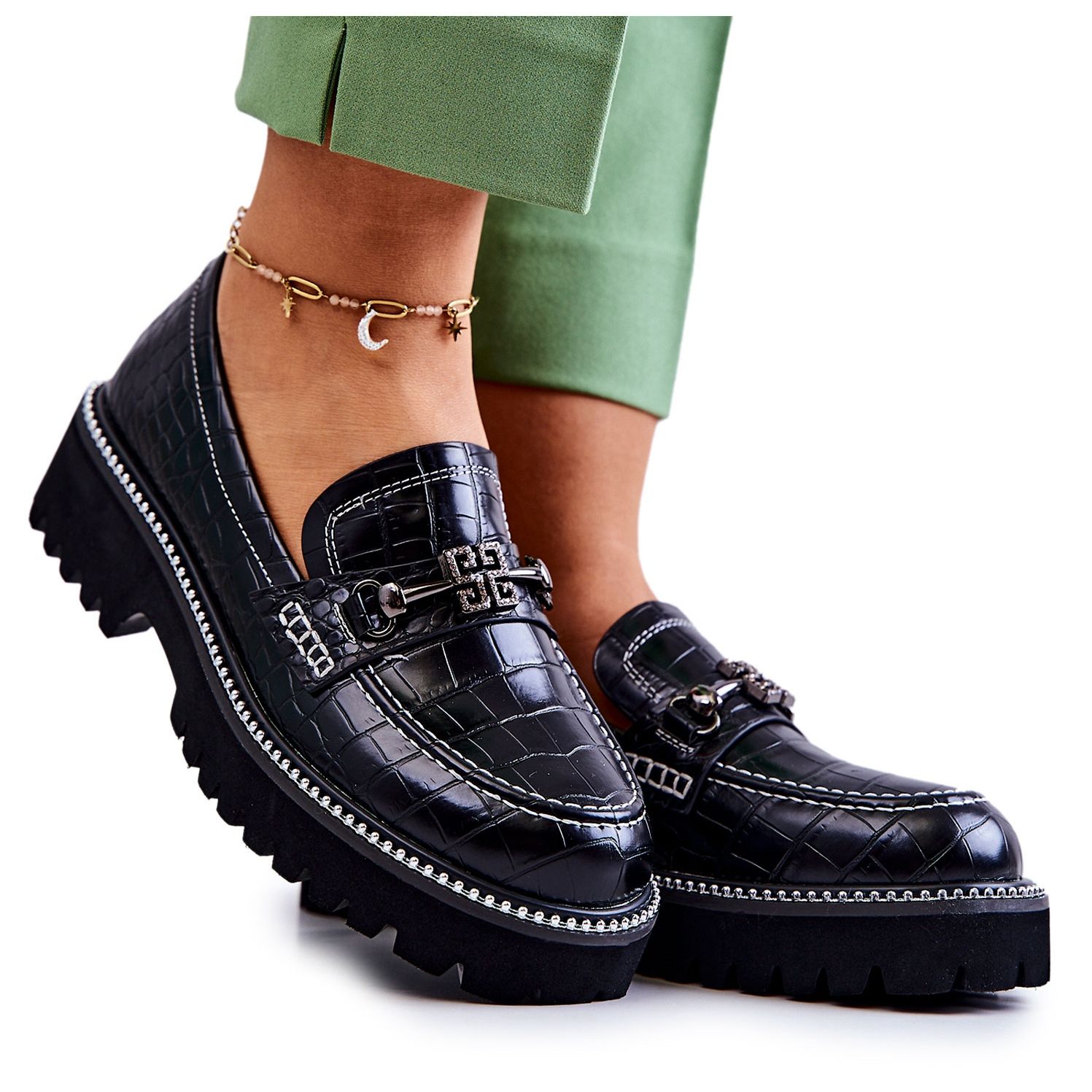 **Pantofi din piele de șarpe cu decor, Adison negru de la S.Barski**