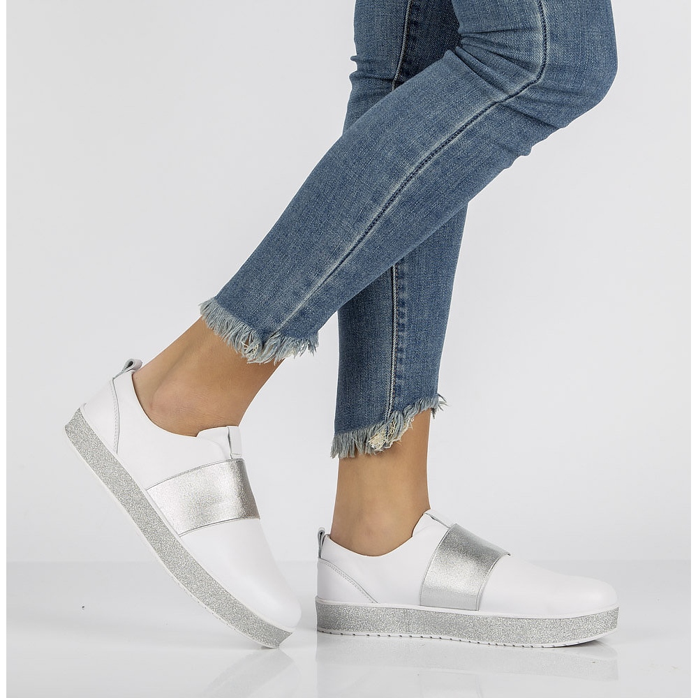 Acești pantofi albi sunt universali și se potrivesc perfect cu diverse stiluri - atât casual, cât și ceva mai eleganti. Din cauza lipsei de modele, acestea pot fi ușor combinate cu alte articole vestimentare. Lățimea G asigură o potrivire adecvată pe picior, iar talpa flexibilă din plastic asigură amortizarea necesară.