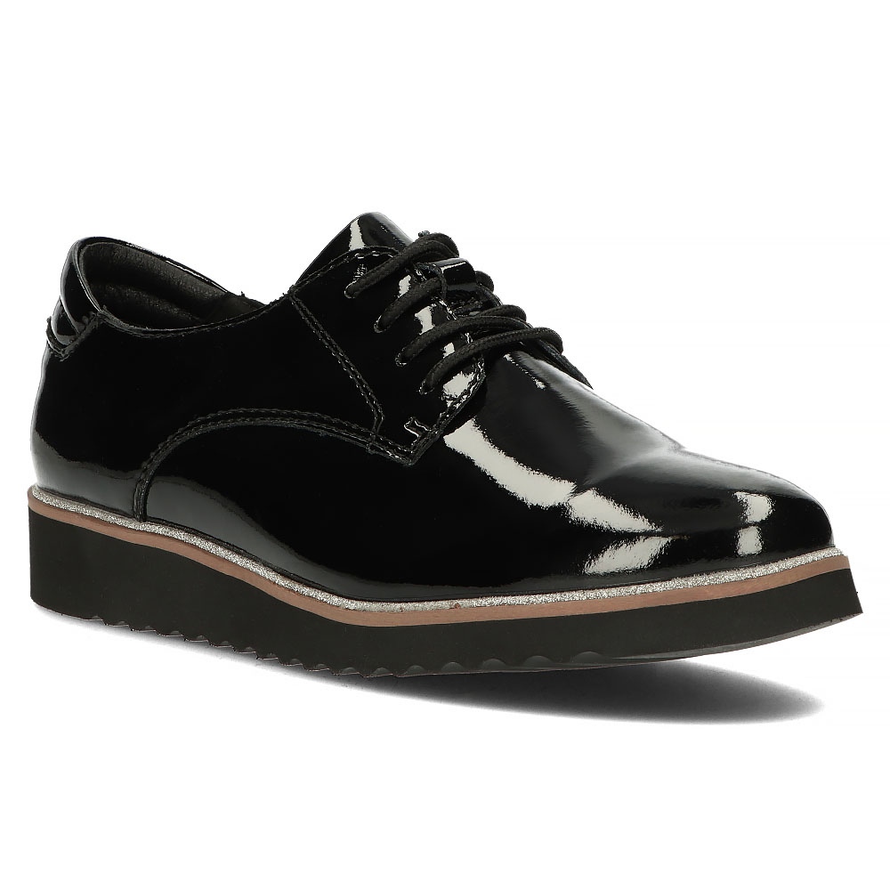 Pantofii din piele Filippo DP1514/22 Bk sunt o alegere excelentă pentru femeile care apreciază eleganța și confortul de zi cu zi. Confectionati din piele naturala, acesti pantofi negri imbina designul clasic cu accente moderne, precum finisajul patentat, care le confera un caracter unic.