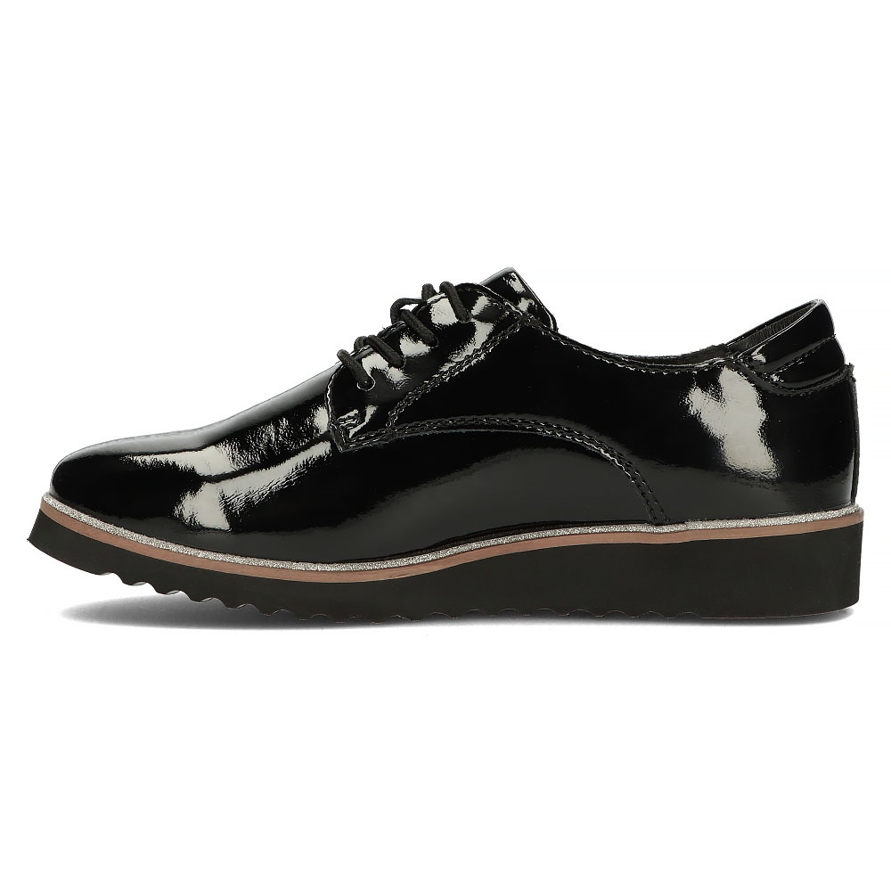 Pantofii se caracterizează printr-un vârf rotund și o închidere cu șireturi, care asigură o potrivire perfectă la picior. Interiorul este căptușit cu material textil, iar branțul din piele naturală garantează confort pe termen lung la purtare. Pantofii au o căptușeală de 6 cm și o pană de 3 cm, ceea ce îi face să alungească optic picioarele și să asigure în același timp stabilitate.