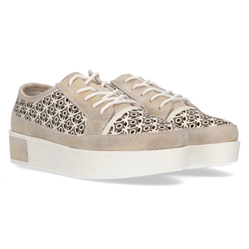 Realizați din piele naturală de înaltă calitate, pantofii se caracterizează printr-un vârf rotund și o închidere cu șireturi, care permite o potrivire perfectă la picior. Culoarea aurie face ca pantofii să iasă în evidență față de ceilalți, făcându-i o alegere perfectă atât pentru ieșirile de zi cu zi, cât și pentru ocazii mai sofisticate.