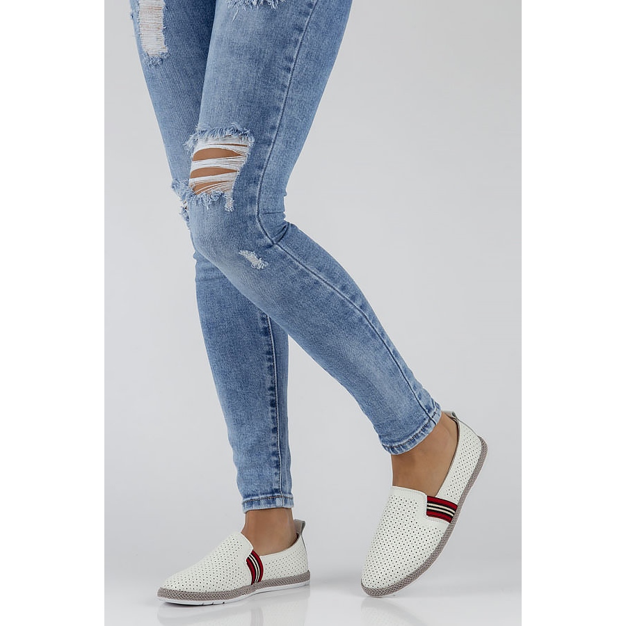 Interiorul pantofilor este finisat cu piele naturală de înaltă calitate, ceea ce îmbunătățește confortul și respirabilitatea. Pantofii sunt slip-on, ceea ce îi face ușor de pus și scos, iar culoarea lor clasică albă îi face să se potrivească în orice stil.