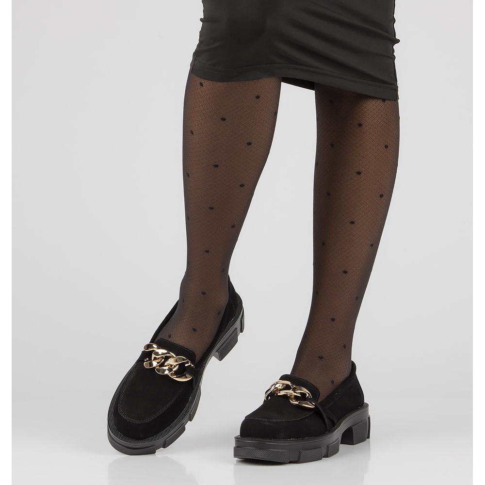 Datorită nasului rotund și închizătoarei cu alunecare, punerea lor este rapidă și confortabilă. Acest model este echipat cu un toc subtire, joase, inaltime de 4,5 cm, care asigura stabilitate la purtare. Talpa din plastic și materialul sintetic al tălpii garantează o aderență adecvată și confort pe tot parcursul zilei.