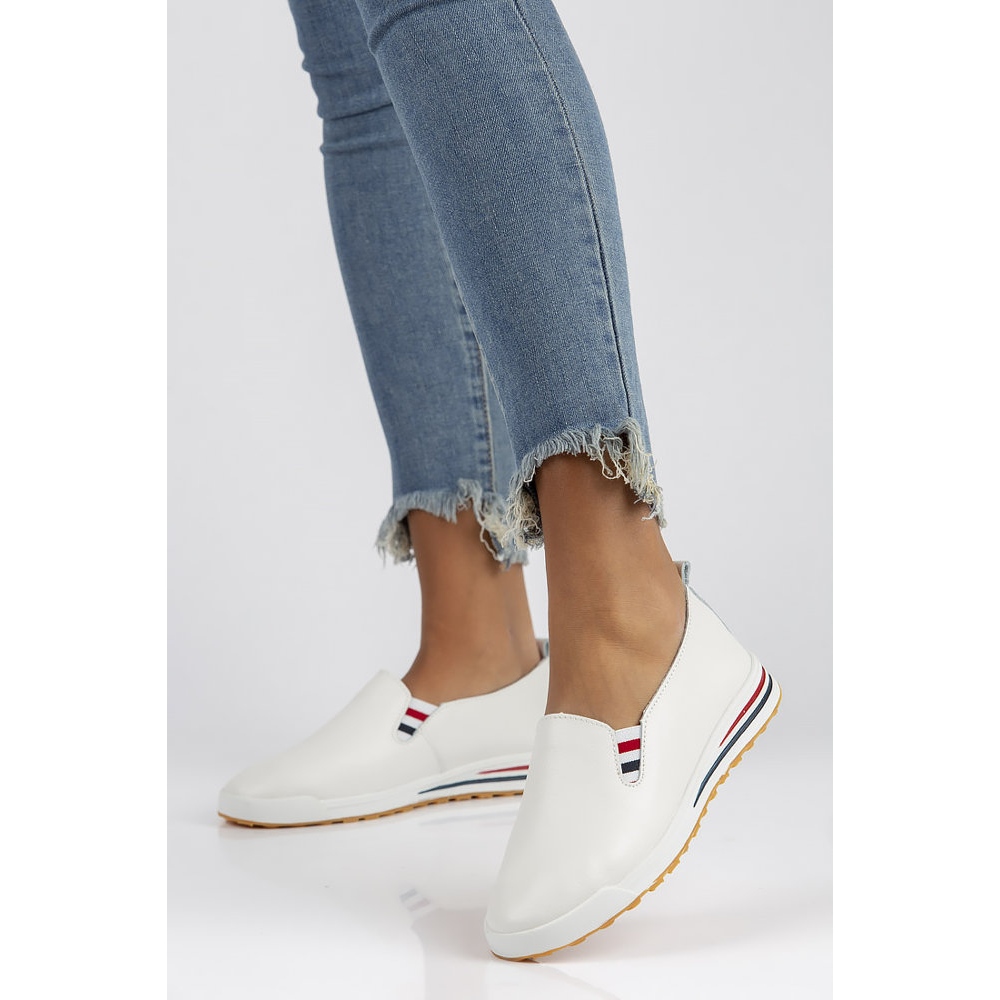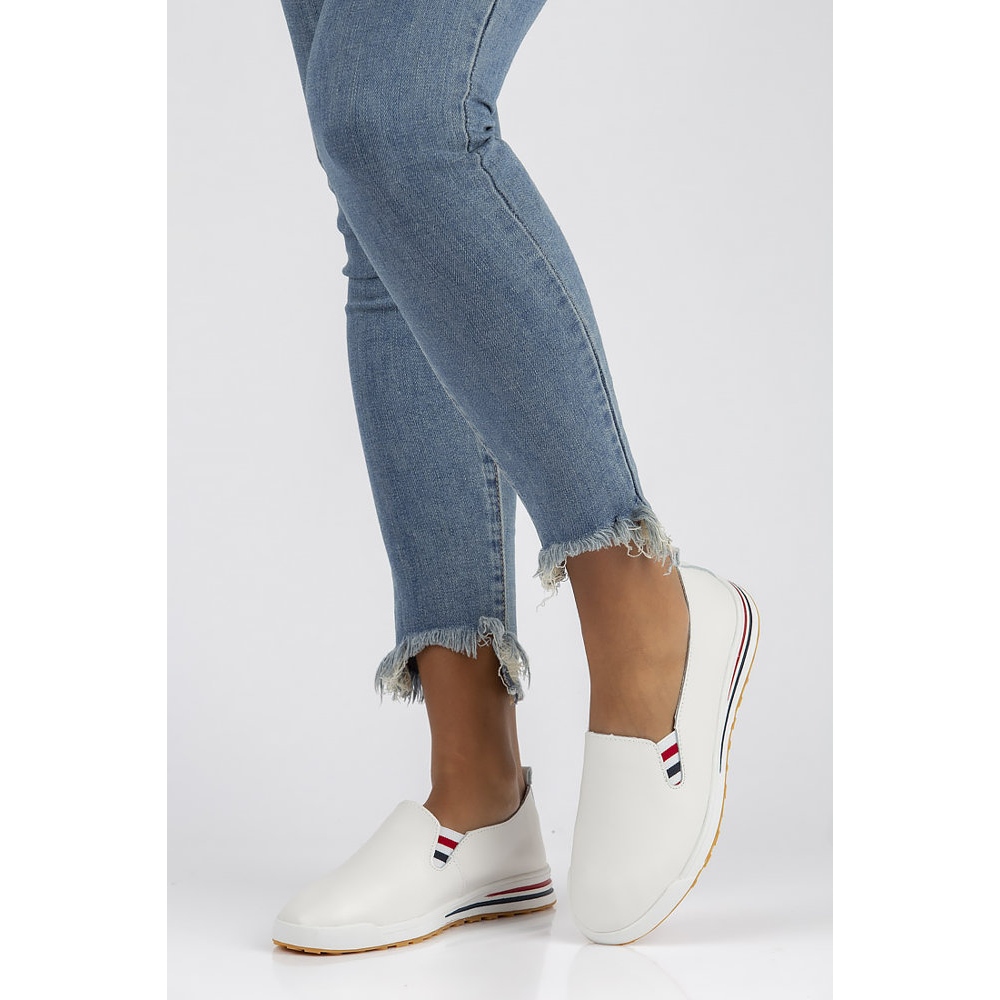Datorită căptușelii și branțului din piele, utilizatorii se pot bucura nu doar de un aspect la modă, ci și de confort pe tot parcursul zilei. Pantofii sunt slip-on, ceea ce îi face ușor de pus și scos. Incaltamintea alba cu model universal se potriveste perfect cu diverse haine, de la stiluri casual la stiluri mai elegante.