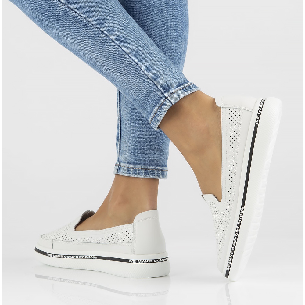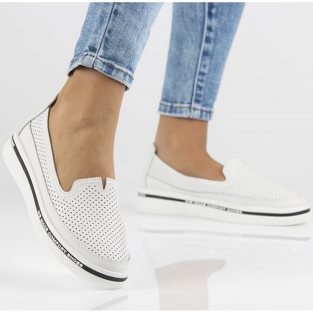 Acești pantofi albi sunt perfecti pentru stilul de zi cu zi, adăugând prospețime și lejeritate. Sunt o alegere excelentă pentru blugi, fuste și rochii de vară. Din colecția KeeShoes, acești pantofi din piele combină stilul și caracterul practic, făcându-i un must-have în garderoba oricărei femei.
