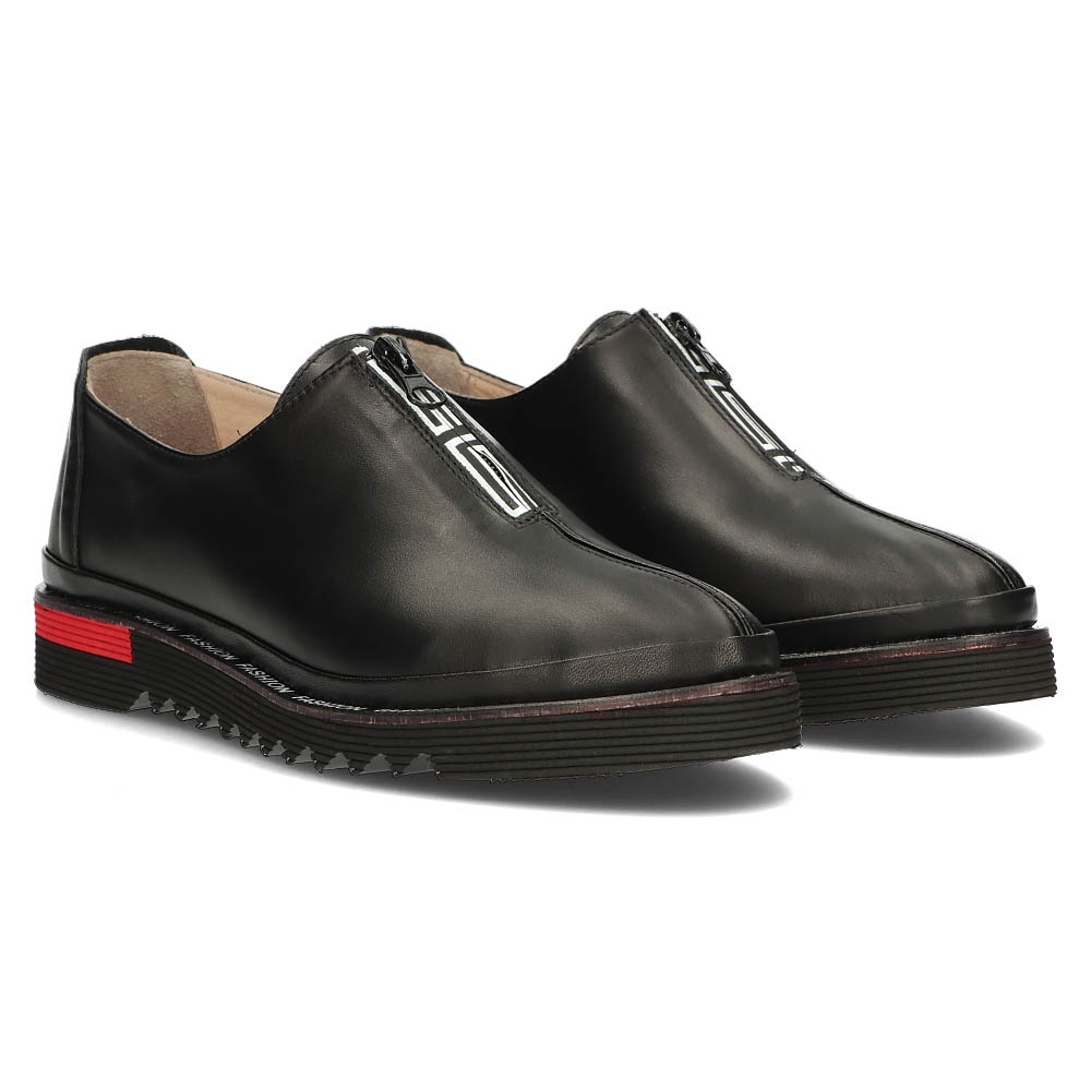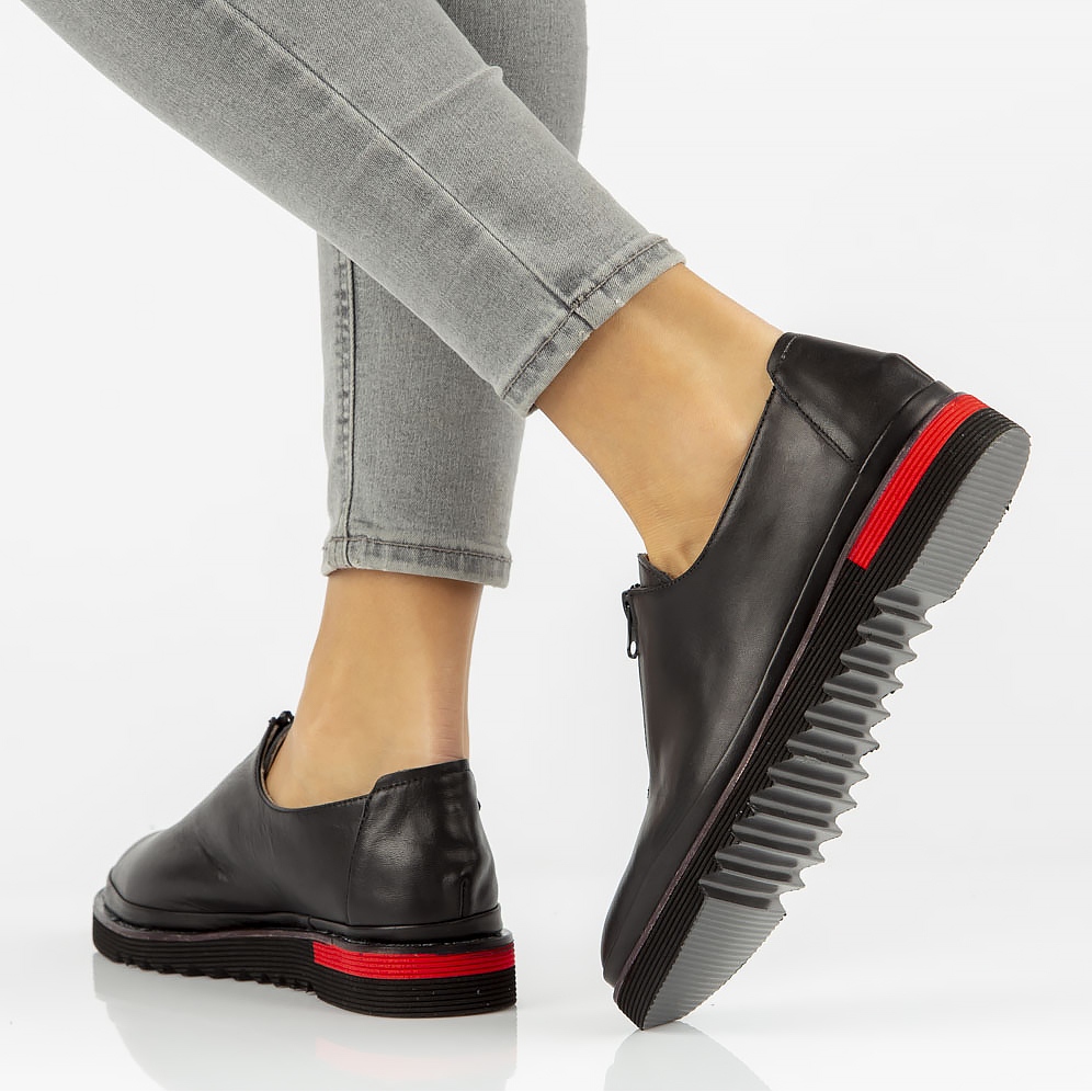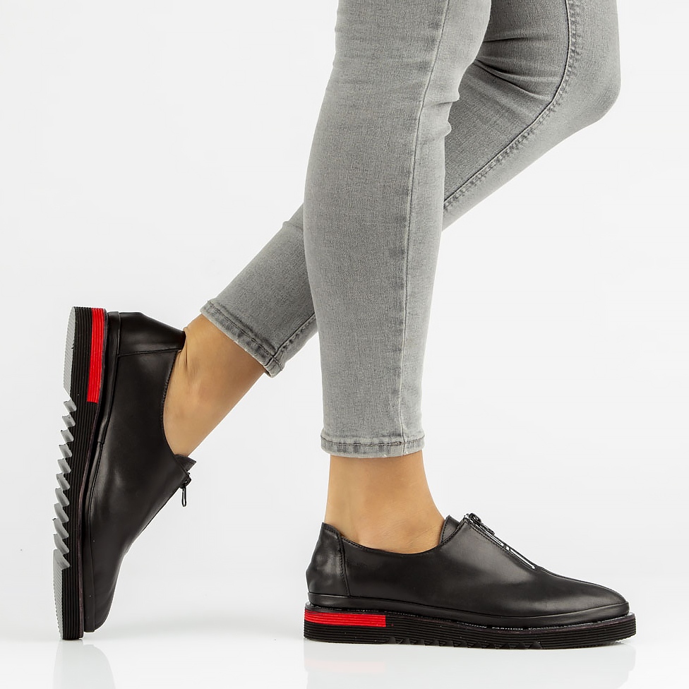 Fermoarul îl face ușor de pus și scos, ceea ce reprezintă un avantaj important în utilizarea de zi cu zi. Interiorul pantofilor este captusit cu piele naturala, ceea ce sporeste confortul si in acelasi timp permite picioarelor sa respire. Talpa din plastic asigură aderență și durabilitate adecvate, iar călcâiul plat scăzut asigură stabilitate în timpul mersului.