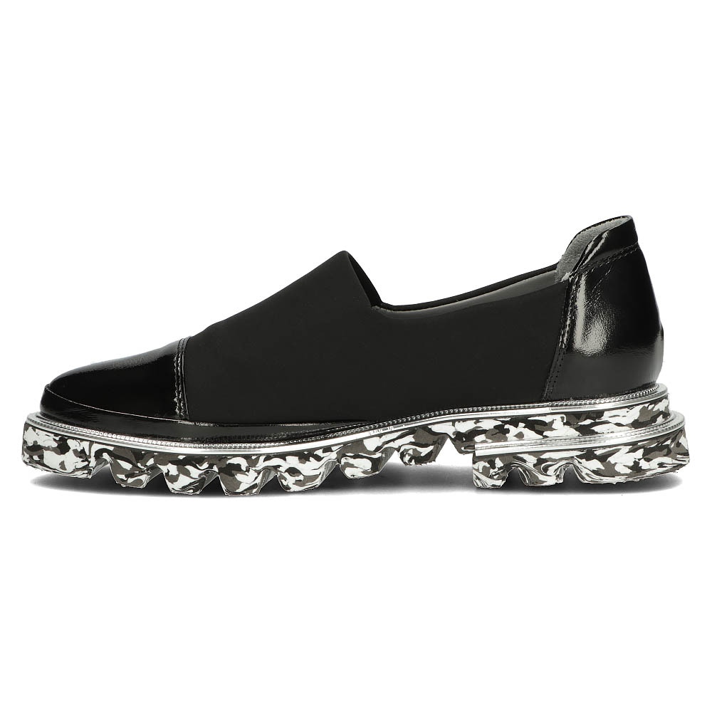 Pantofii au vârful rotund și o formă delicată, migdalată, care le conferă un farmec subtil. Datorită închiderii cu slip-on, încălțămintea este extrem de practică și ușor de îmbrăcat, ceea ce o face perfectă pentru stilul de zi cu zi, urban. Căptușeala și branțul din piele naturală garantează confort și respirabilitate, asigurând confort chiar și în timpul purtării pe termen lung.