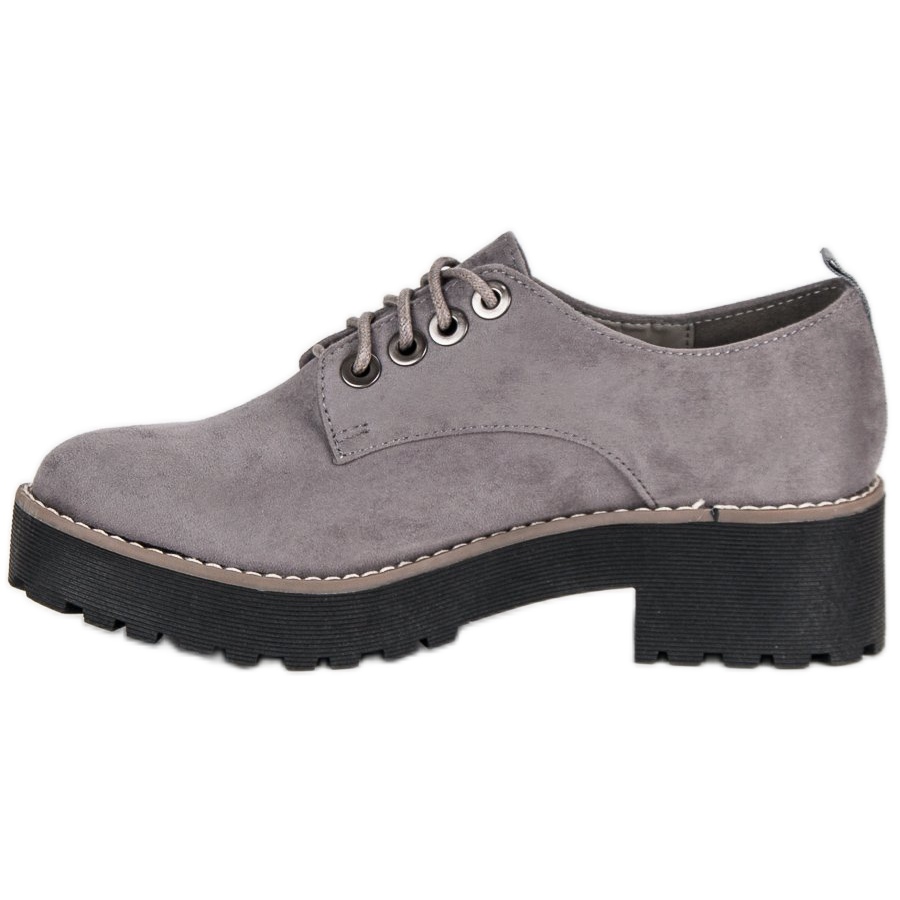 Descopera eleganta si confortul cu pantofii gri din piele intoarsa! Acești pantofi unici combină o culoare extraordinară de gri deschis cu o croială clasică de pantofi cu șireturi, făcându-i un element versatil al oricărei garderobe. Platforma lor neagră caracteristică, care măsoară 2 cm, adaugă stil și evidențiază avantajele fiecărui stil.