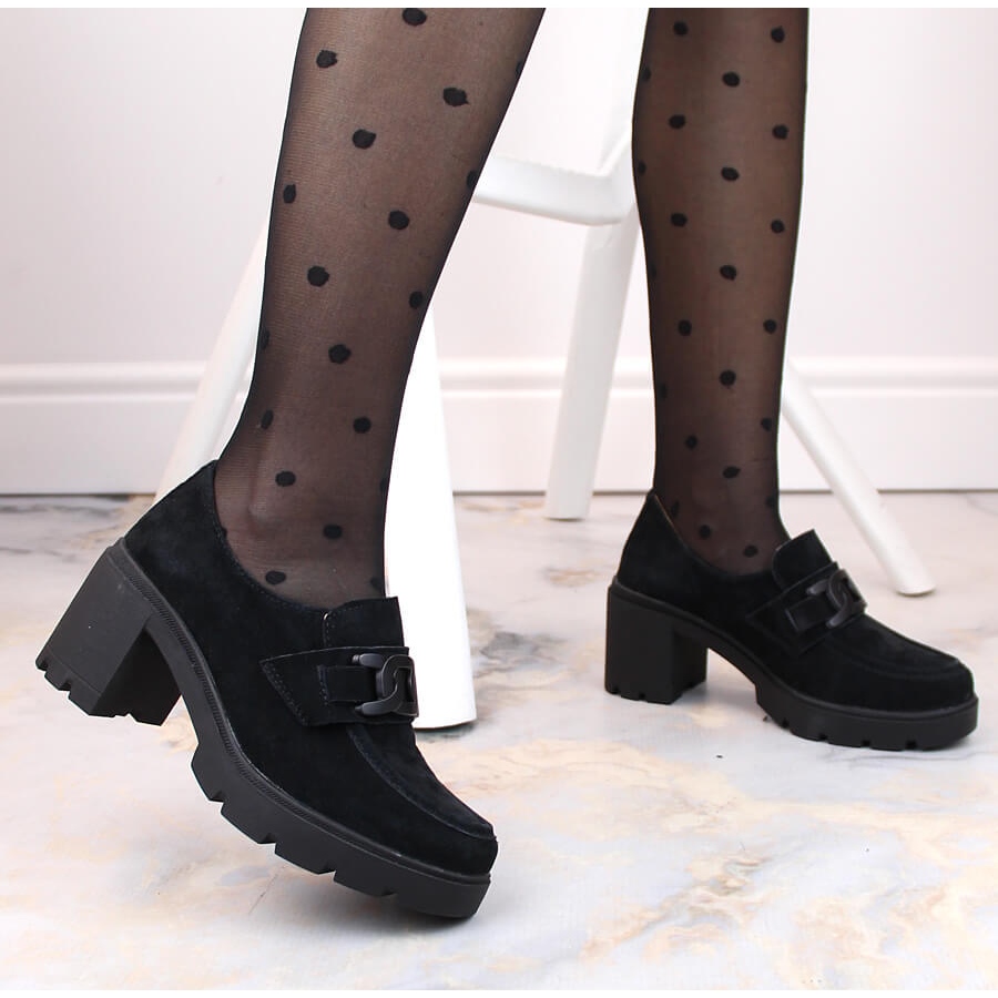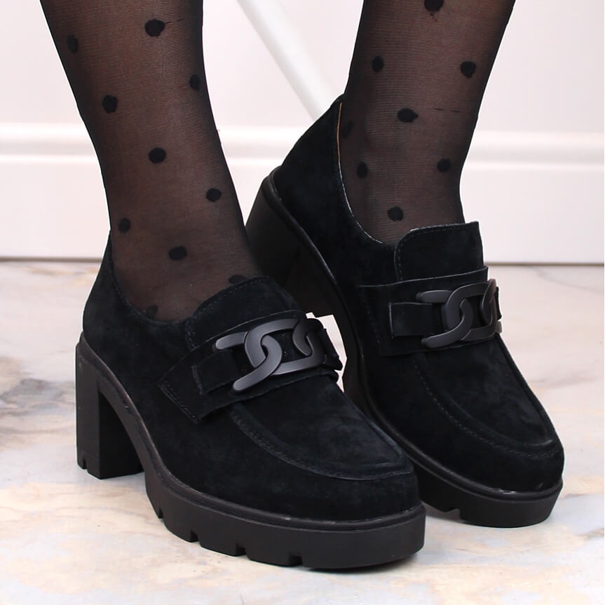 Detalii: Pantofi din piele intoarsa, mocasini pe toc inalt si platforma, negru Filippo DP4785