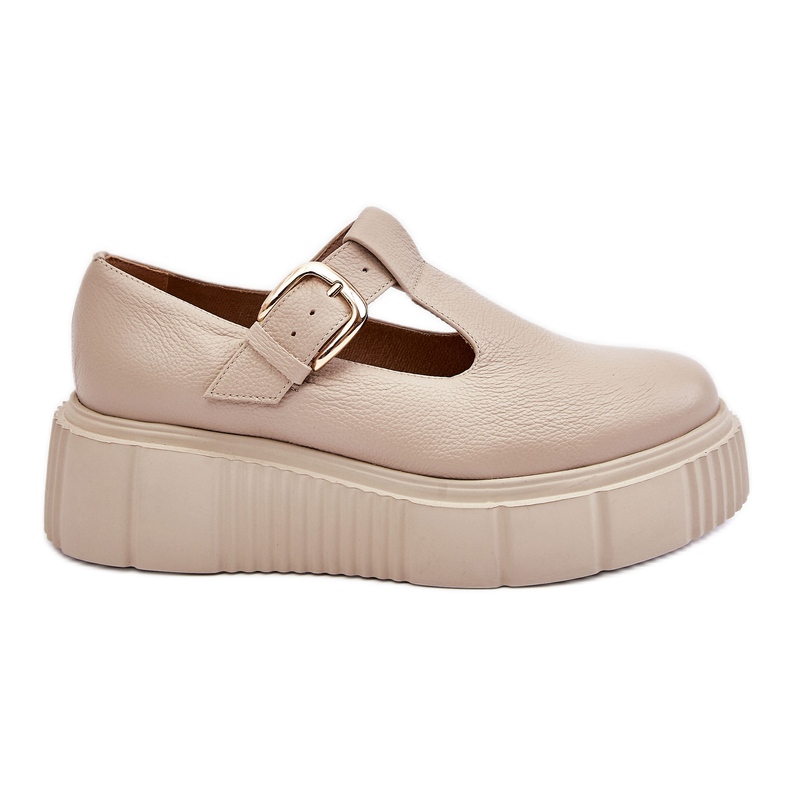 Pantofi din piele la modă Lemar pe o platformă masivă Bej Colson – Eleganță în bej