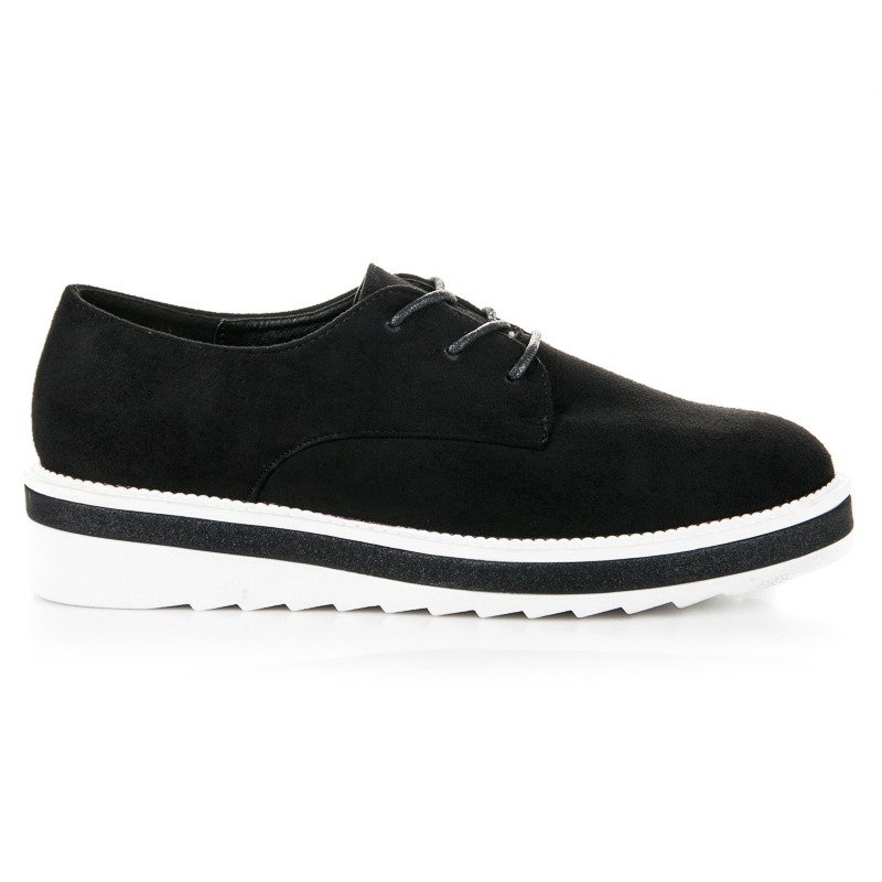 Culoarea lor clasică neagră le face să se potrivească cu multe ținute, iar nasul rotund elegant le conferă un farmec subtil. Interiorul pantofilor este finisat cu piele ecologica, ceea ce asigura confortul la purtare pe tot parcursul zilei. Închiderea cu dantelă permite o potrivire perfectă pe picior, iar călcâiul încorporat, rigidizat, oferă stabilitate și sprijin.