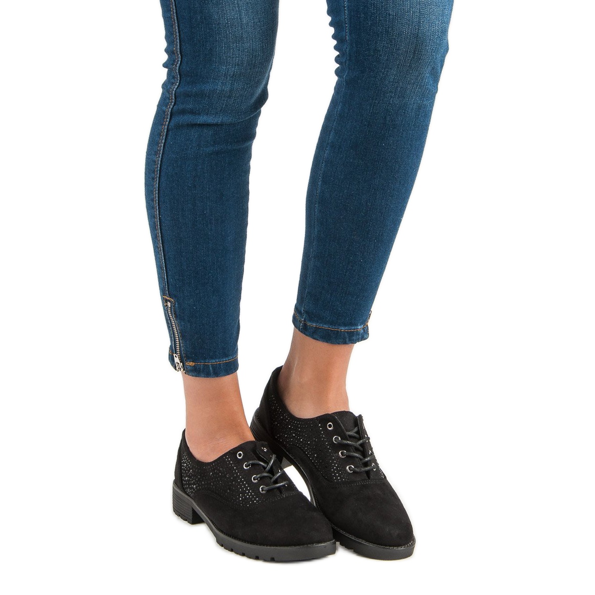 Pantofii negri de piele intoarsa de la marca Butymodne sunt un must-have in garderoba oricarei femei. Designul lor minimalist, dar elegant, le face ușor de combinat cu o varietate de stiluri. Strasurile care decorează partea superioară le dau caracter, iar vârful rotund le face cu adevărat confortabile.
