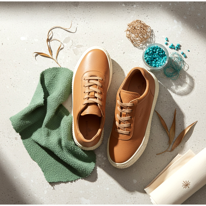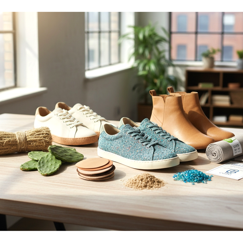 În practică, pantofii eco pot fi confecționați din materiale organice (bumbac organic, in, cânepă), materiale reciclate (sticle PET reciclate, anvelope vechi, deșeuri marine) sau înlocuitori inovatori de piele (piele din ciuperci, ananas, cactus). Tălpile sunt adesea făcute din cauciuc natural sau din cauciuc reciclat.