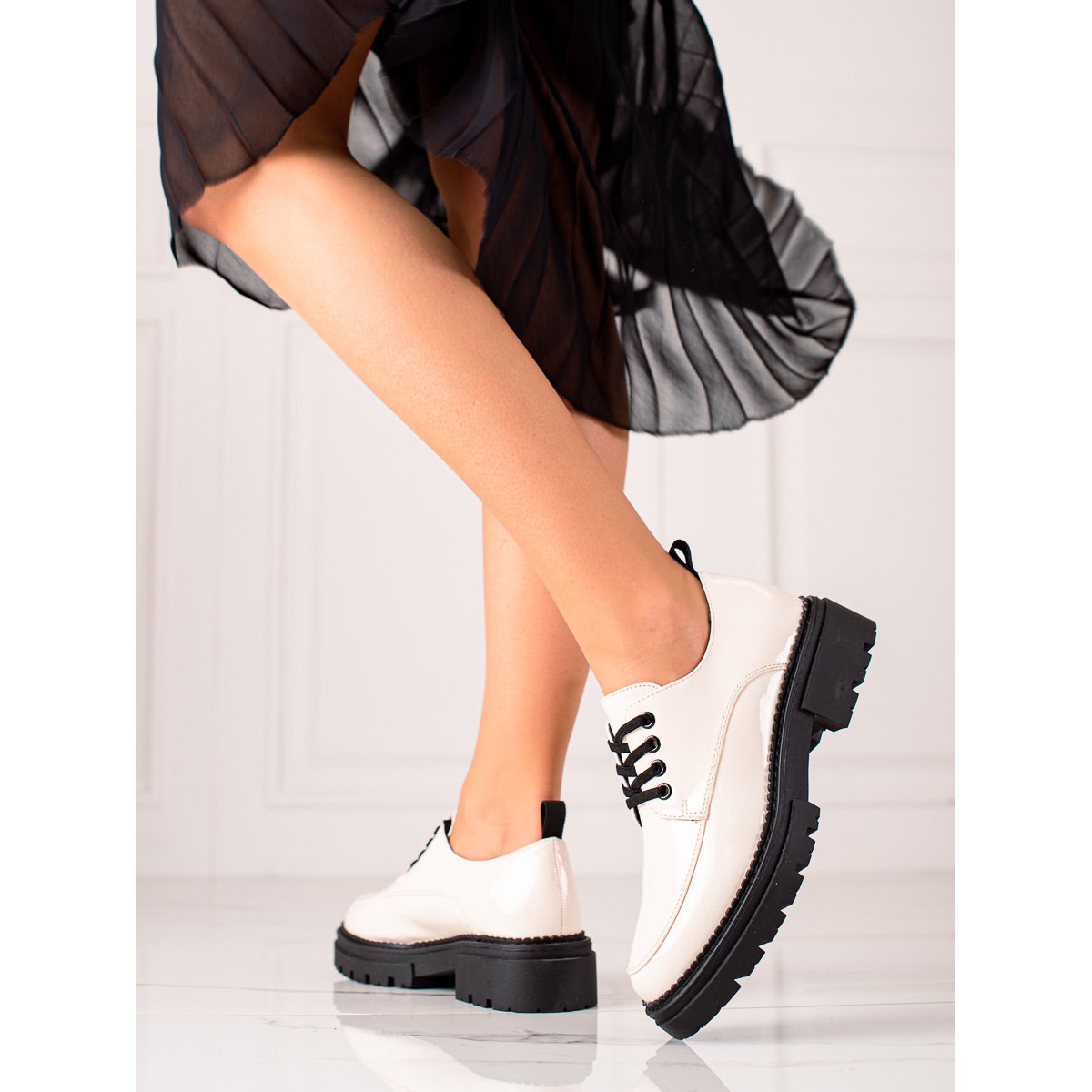Descoperiți eleganța și confortul care se combină în pantofii eleganti cu șireturi La.Fi. Acești pantofi unici sunt completarea perfectă pentru orice garderobă, combinând casual șic cu un finisaj elegant. Fabricate din imitație de piele de înaltă calitate, sunt disponibile în culorile clasice alb și negru, ceea ce le face perfecte pentru orice ocazie - atât de zi cu zi, cât și în timpul sărbătorilor.