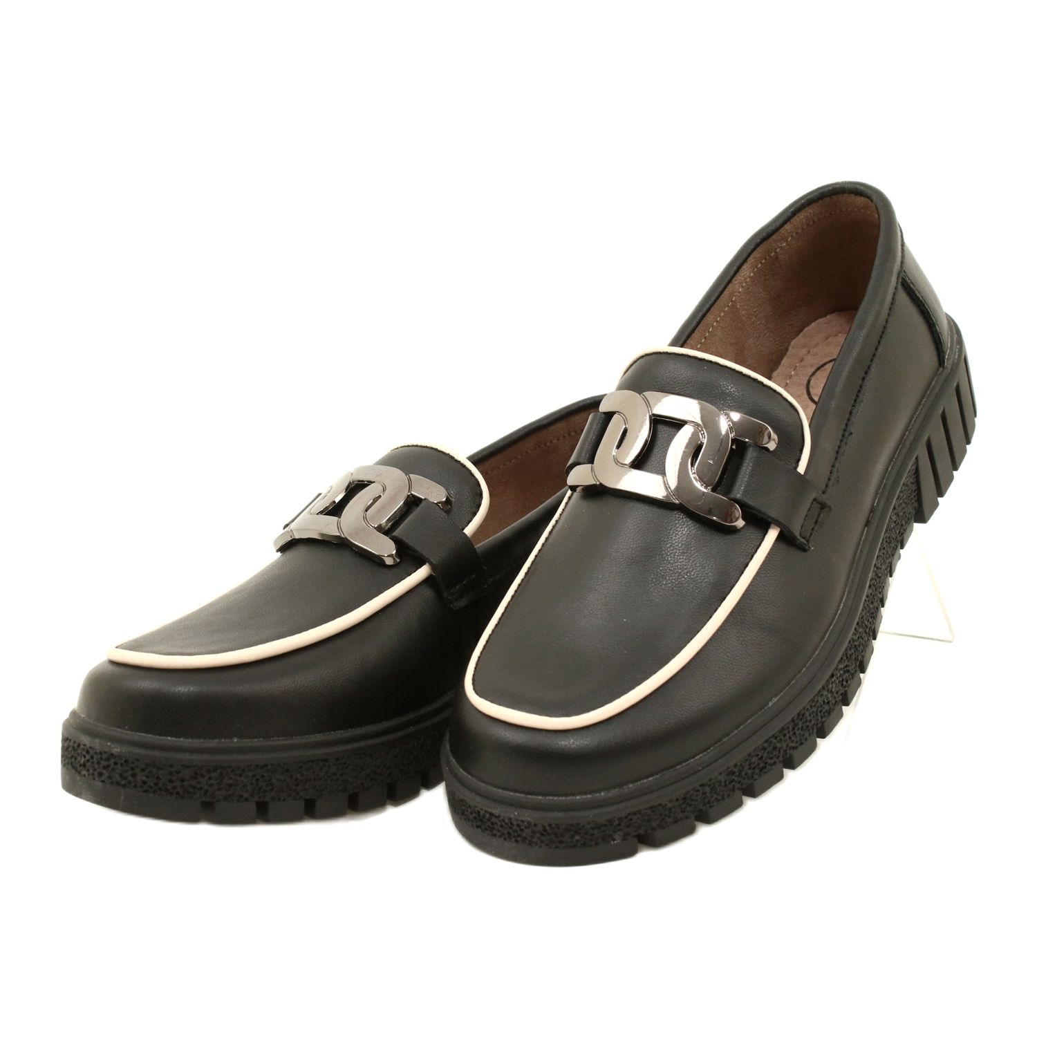 - Trimitul contrastant și personajul de adăugare a lanțului, datorită căruia pantofii sunt excelenți atât pentru stilizări casual, cât și pentru mai elegante.