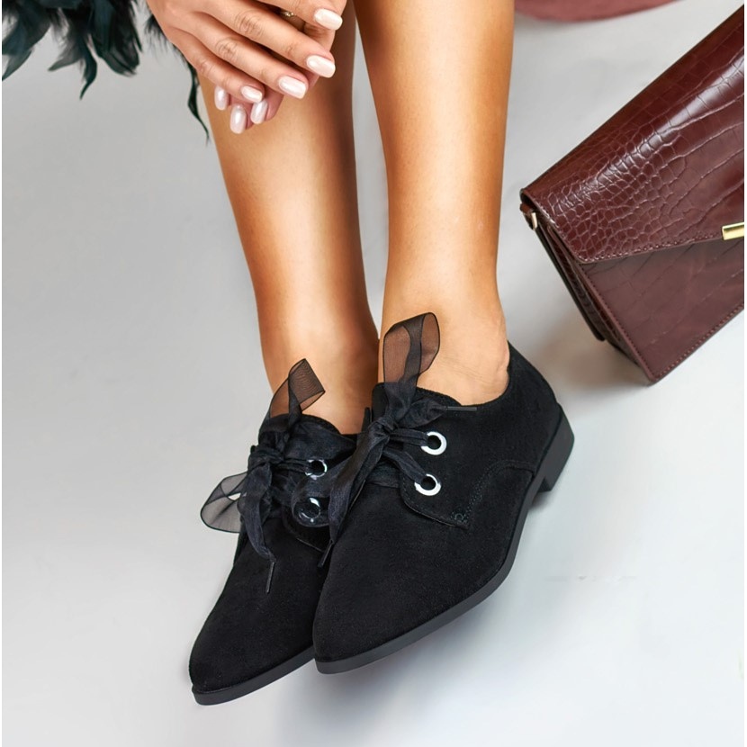 Încălțăminte clasică, feminină La.fi, făcute din piele de căprioară ecologică în Universal Black. Dantelă -up, cu un deget rotund și o inserție naturală de piele - perfectă pentru sezonul de primăvară/vară pentru persoanele care apreciază confortul și stilul.