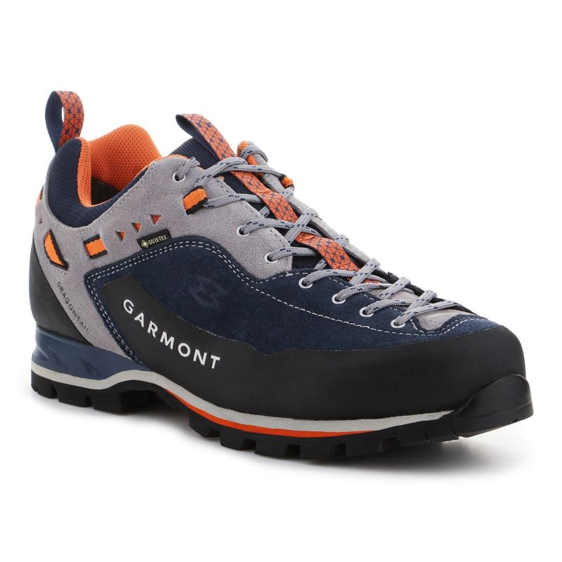 Garmont Dragontail MNT GTX M (002471) Pantofi -pantofi masculi, trekking scăzut în culori Navy -Orange -Gray (Navy/Grey/Orange). O combinație de forță, stabilitate și confort în câmp și în oraș.
