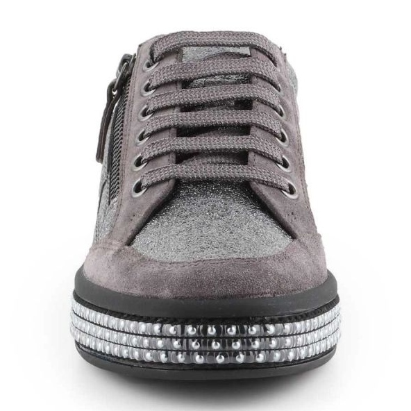 Adidașii originali pentru femei Geox d leel'e din piele din piele de căprioară în combinație cu materiale sintetice. Un finisaj elegant, neutru, gri și o talpă neagră fac ca pantofii să se potrivească cu ușurință de multe stilizări de zi cu zi. Echipate cu tehnologie brevetată Respira, acestea oferă o ventilație excelentă a piciorului în timp ce protejează împotriva umidității.