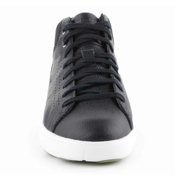 Pantofii Geox U Nebula YBM U948FB-00046-C4002 sunt incaltaminte sport eleganta, pentru barbati. Sunt confectionate din piele naturala neagra, rezistenta. Au o croială decoltată și se prind cu șireturi, ceea ce permite o potrivire perfectă pe picior. Pantofii se disting prin tehnologia Net Breathing System, care este folosită în inserția din piele. Garantează circulația perfectă a aerului, prevenind transpirația excesivă a picioarelor. Talpa Respira, din material sintetic, este perforata si bazata pe o membrana microporoasa. Acest lucru face ca pantofii să fie respirabili și nu impermeabili.